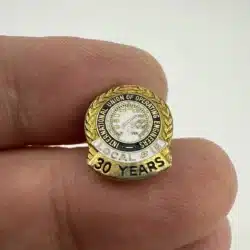This vintage service pin features the emblem of the Local 12 International Union of Operating Engineers of Pasadena California, symbolizing dedication and commitment to the trade. The design reflects 30 years of service, showcasing the union’s rich history and the pride associated with long-term membership.