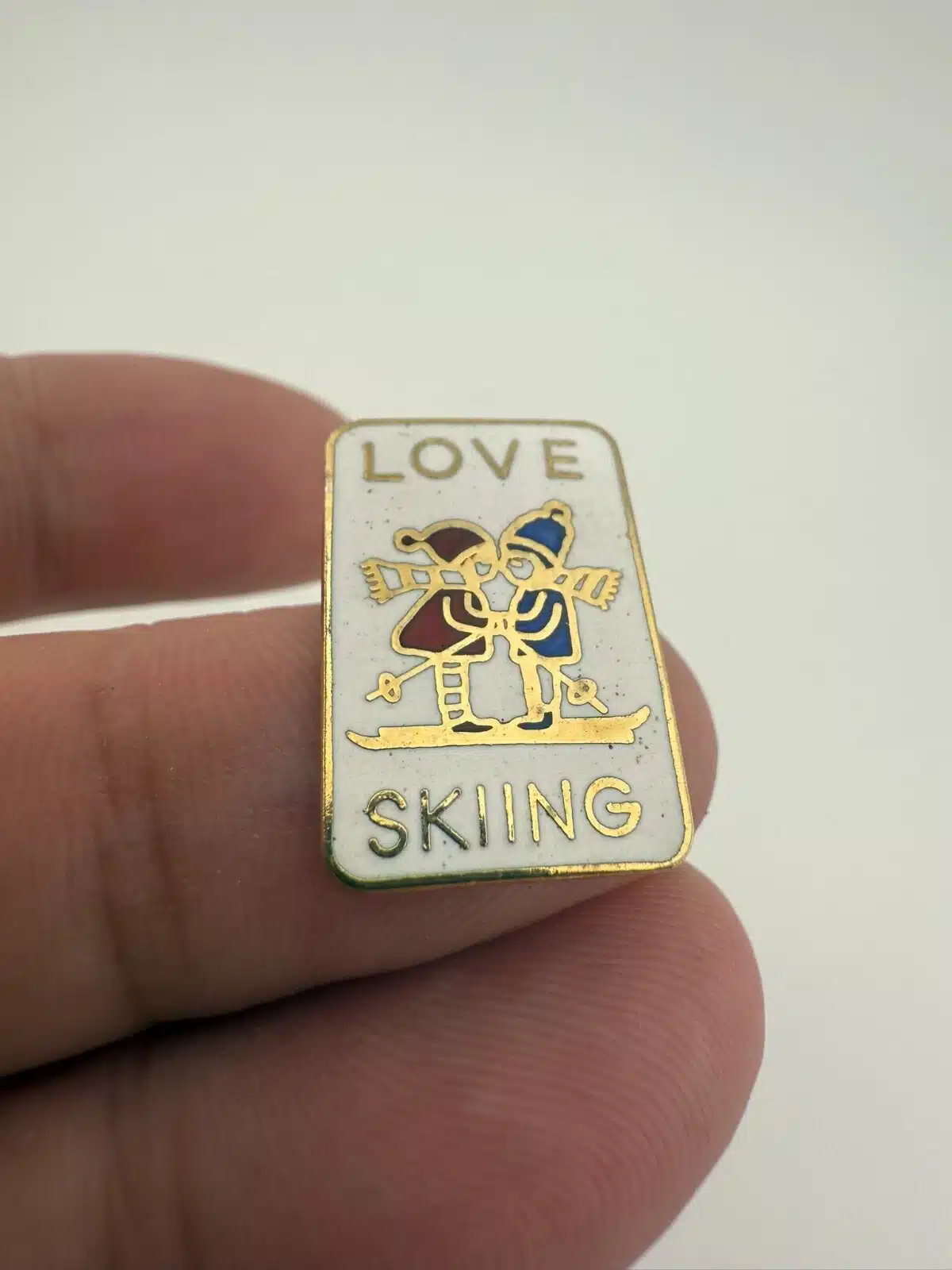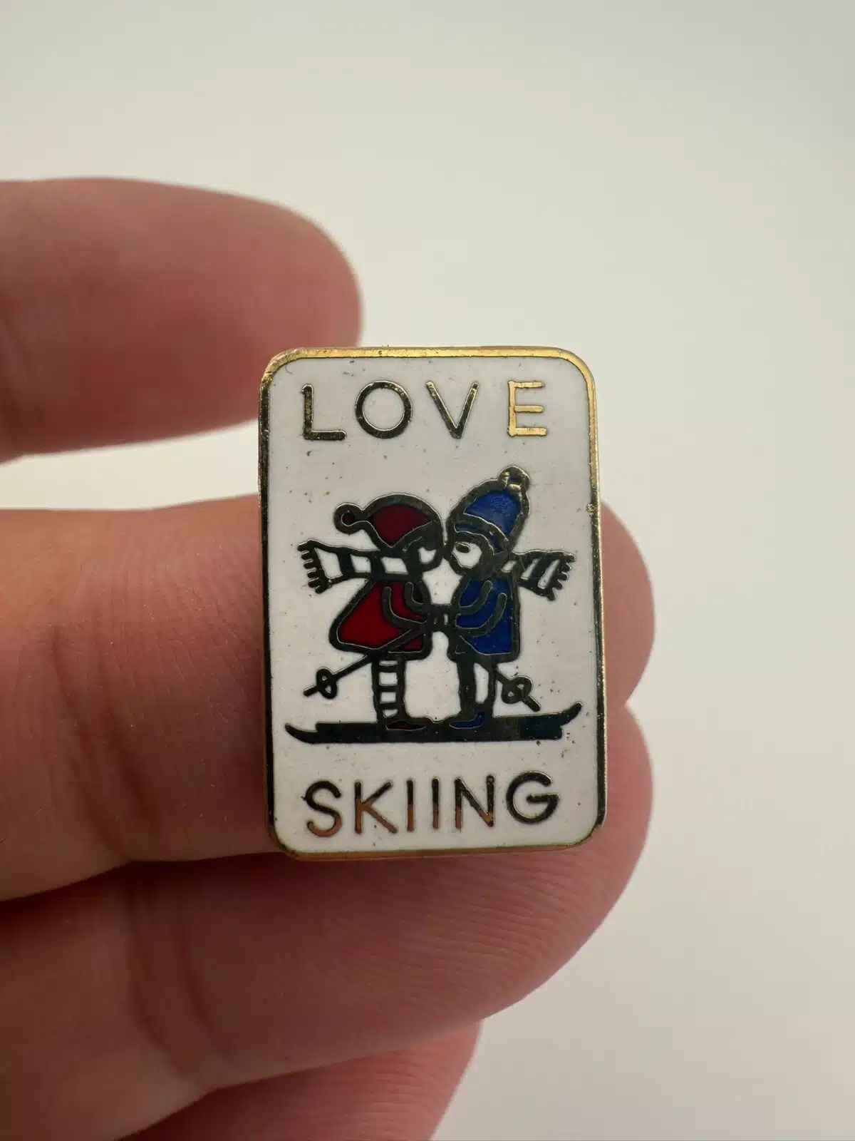 Vintage Love Skiing Lapel Hat Pin Brooch *aged enamel*