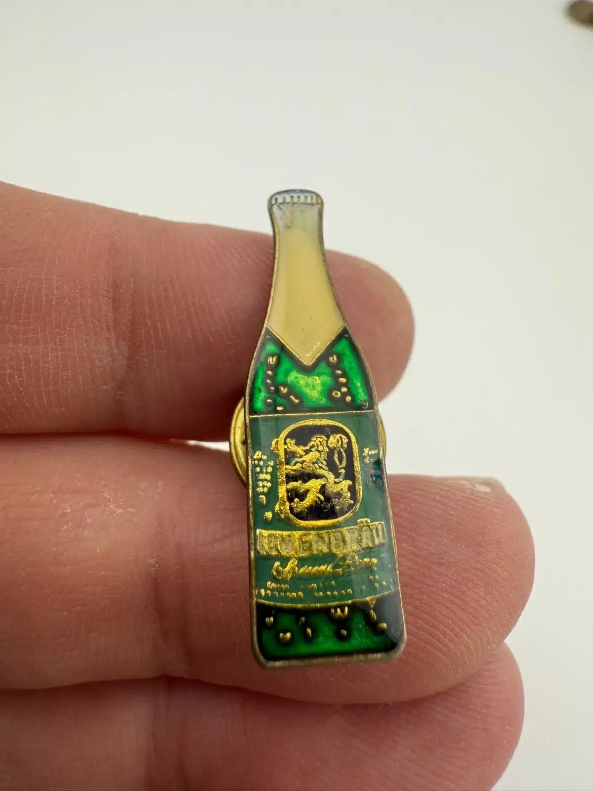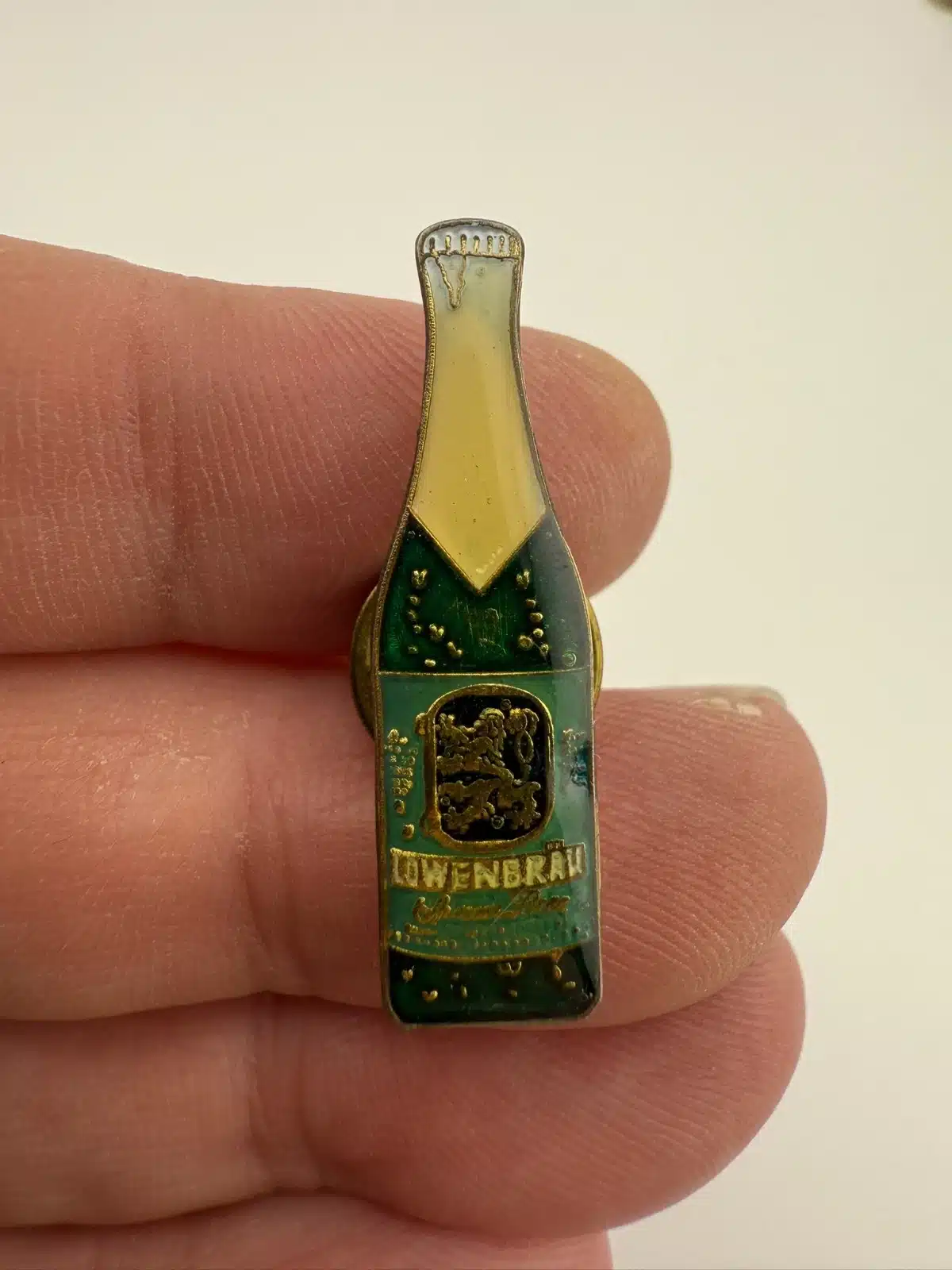 Vintage Lowenbrau beer bottle pin. Nice pickup if you’re building out a collection of classic beer and brewery pins.