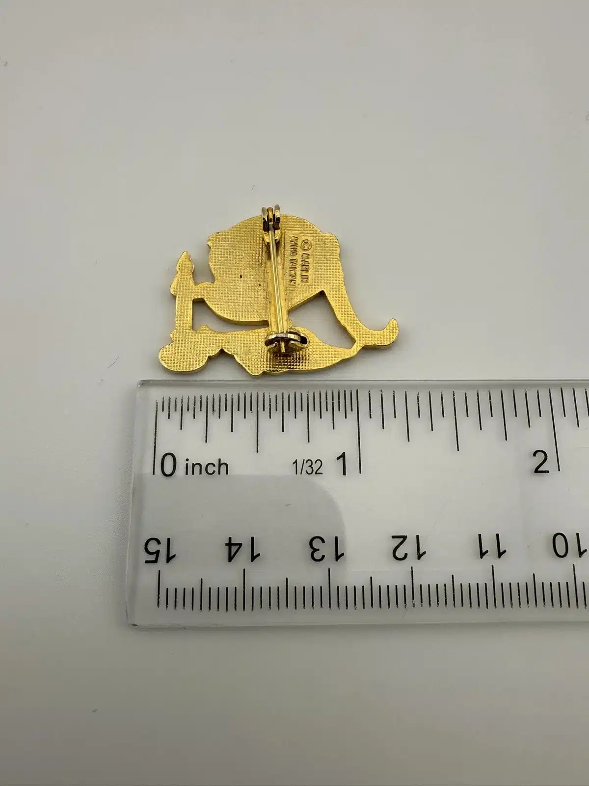 This vintage pin brooch features an adorable and charming design of a little girl holding a candle, created by MARLIN and AVIVA. I believe this is a design created by Marty Links but am not overly confident.