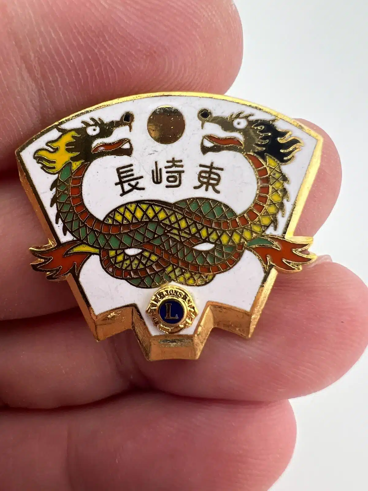 Vintage Nagasaki East Lions Club International Pin Brooch With 2 Dragons – USED