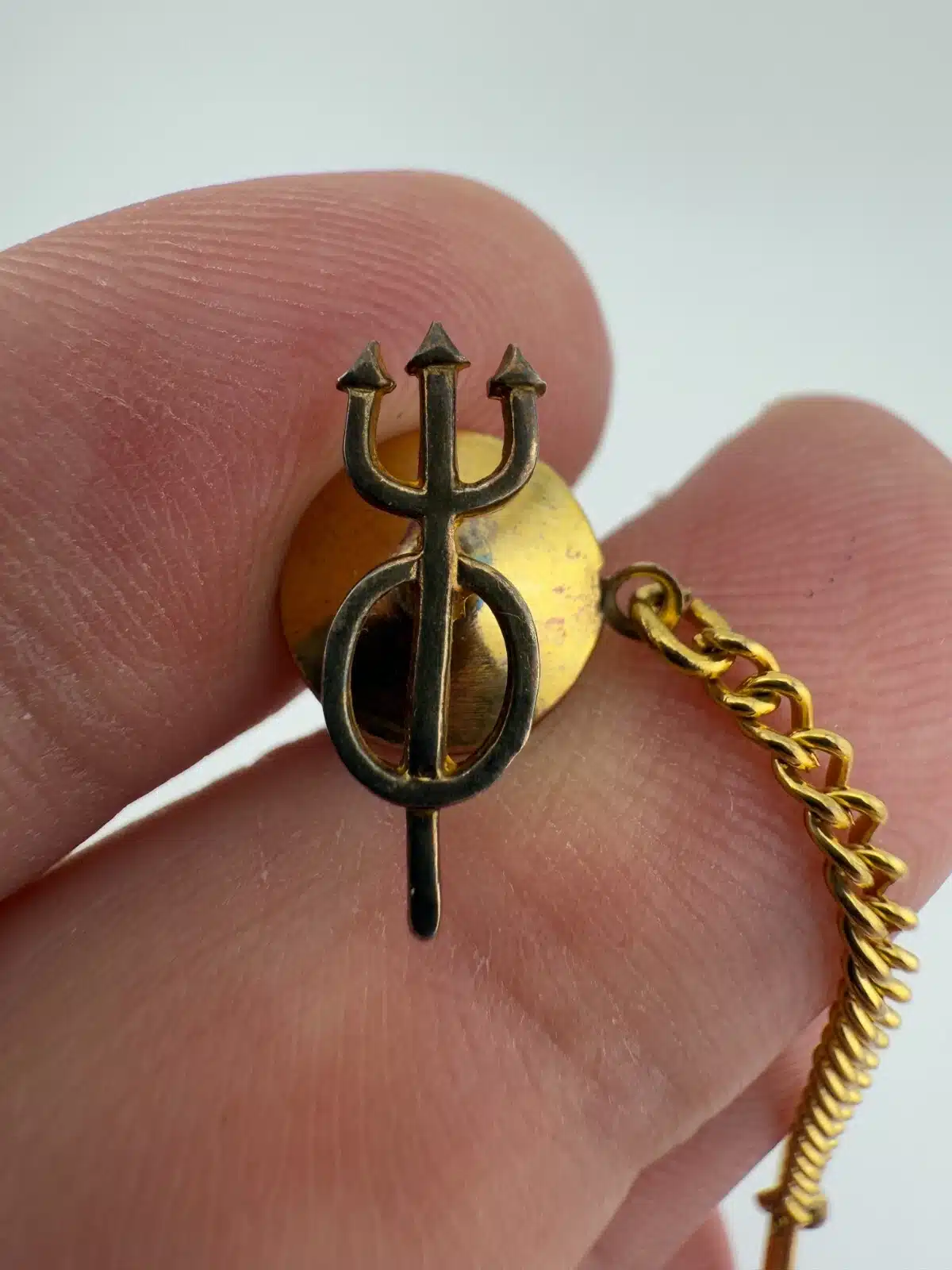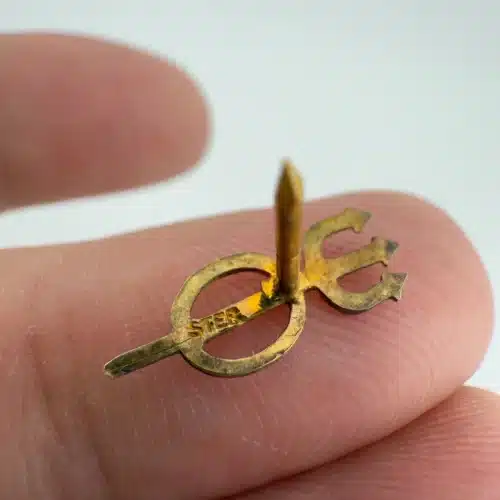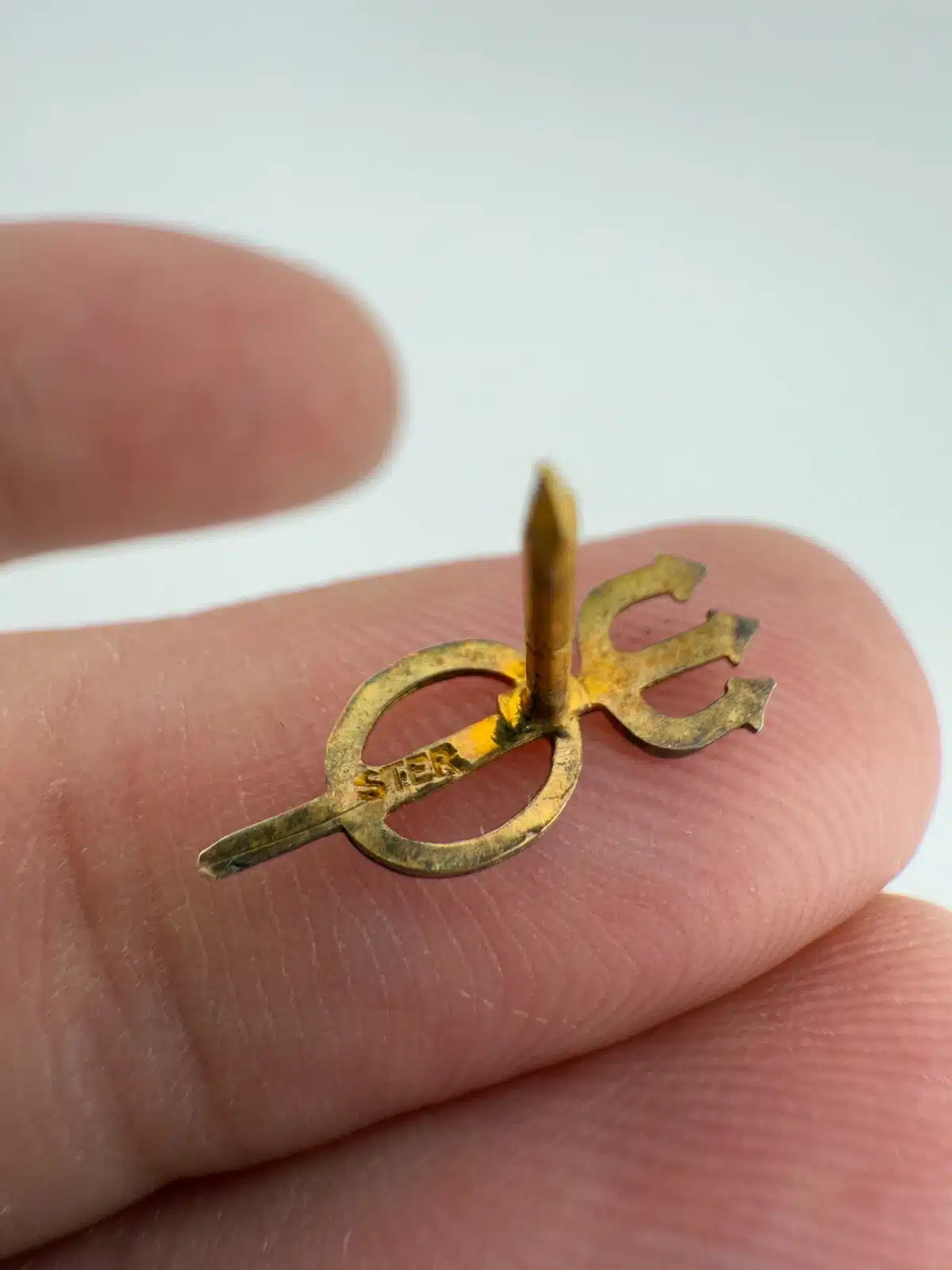 Vintage Number 0 With Pitchfork Pin – Sterling Silver – Patina – *Bent*