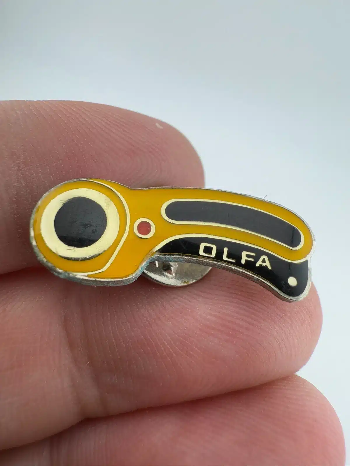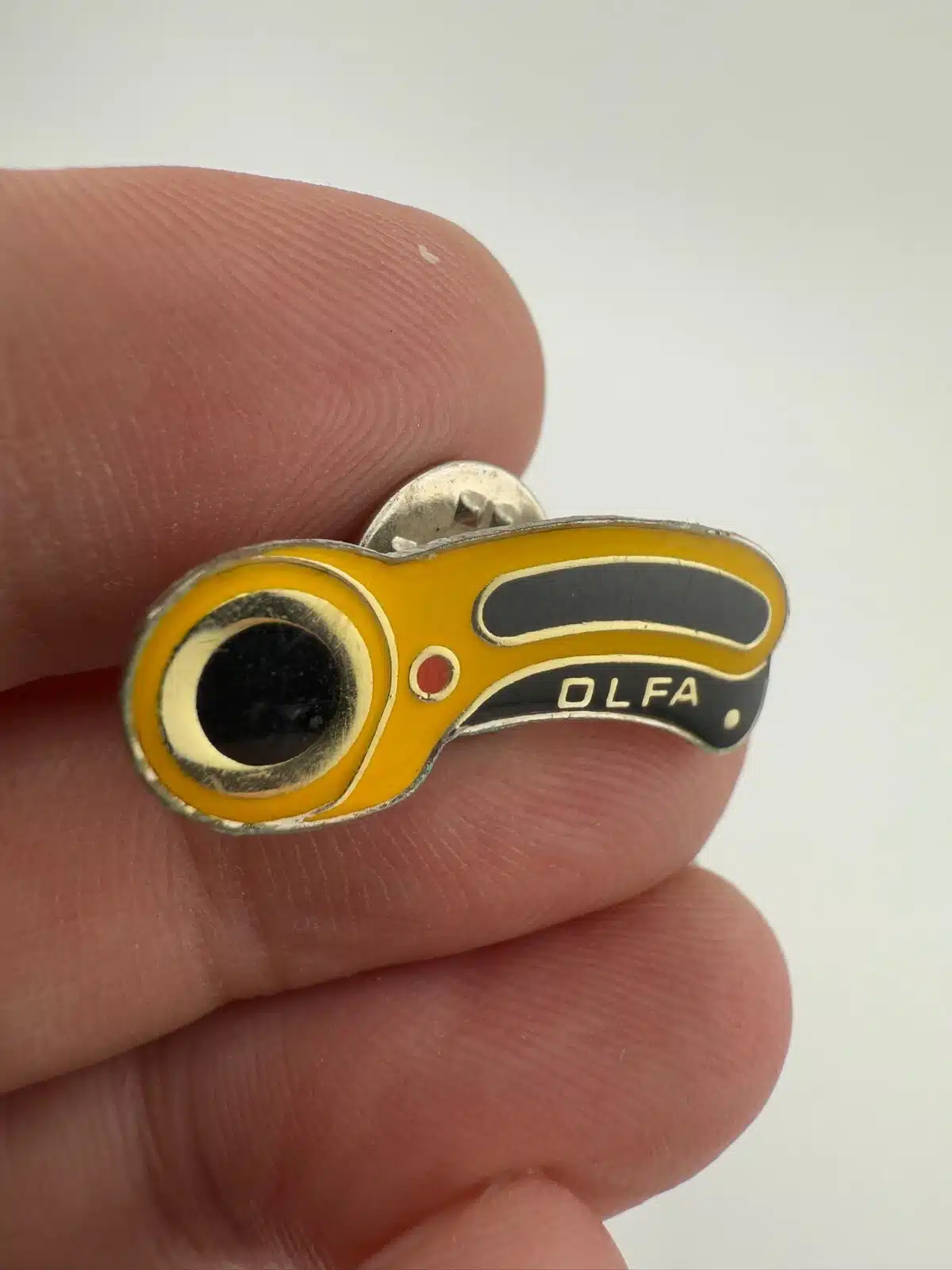 Vintage OLFA Rotary Cutter Lapel Hat Pin *read description*