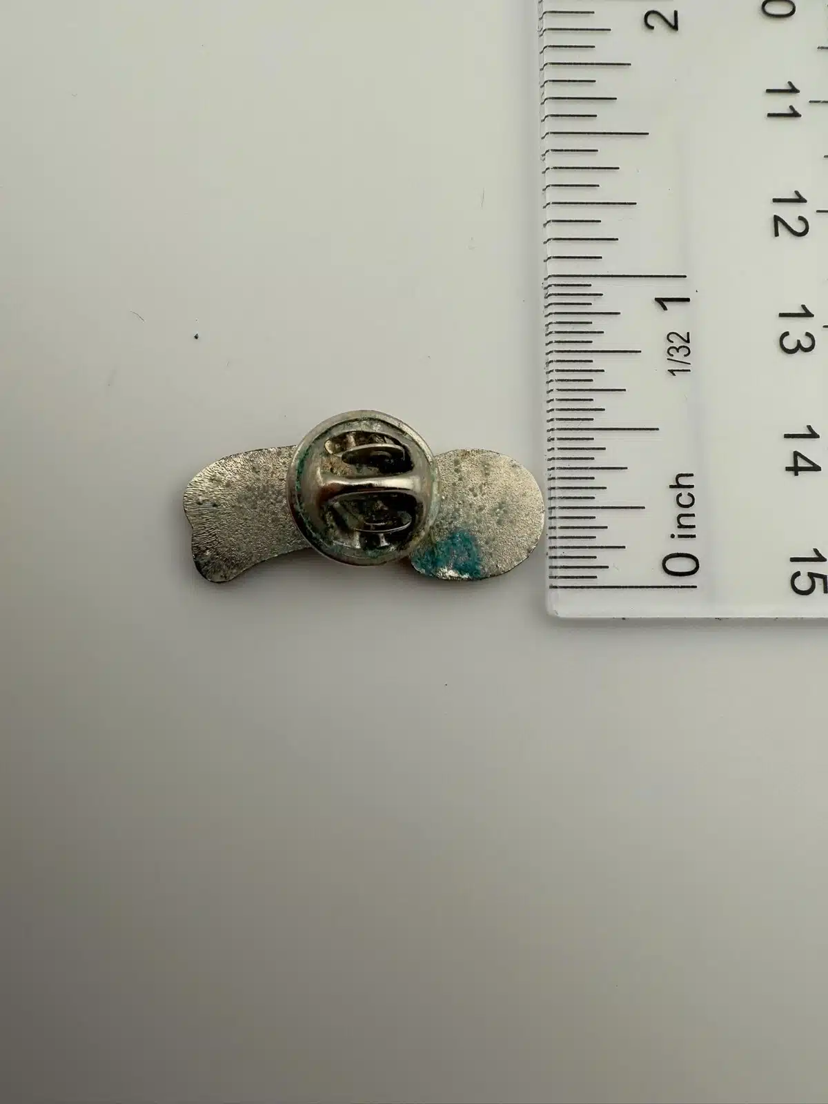 Used with marks + scratches and corrosion on rear of pin. Please see all photos for exact condition of item and size.
