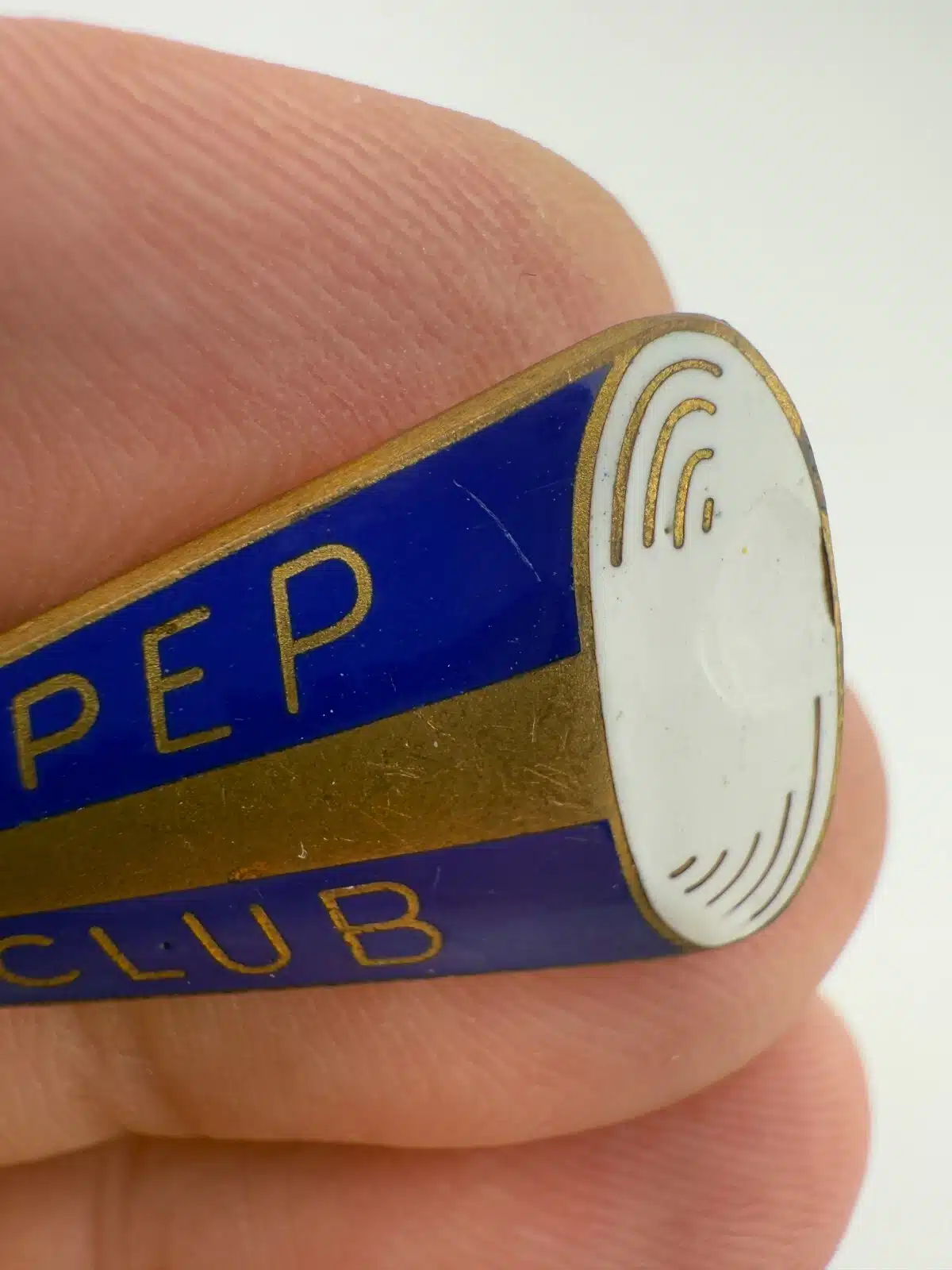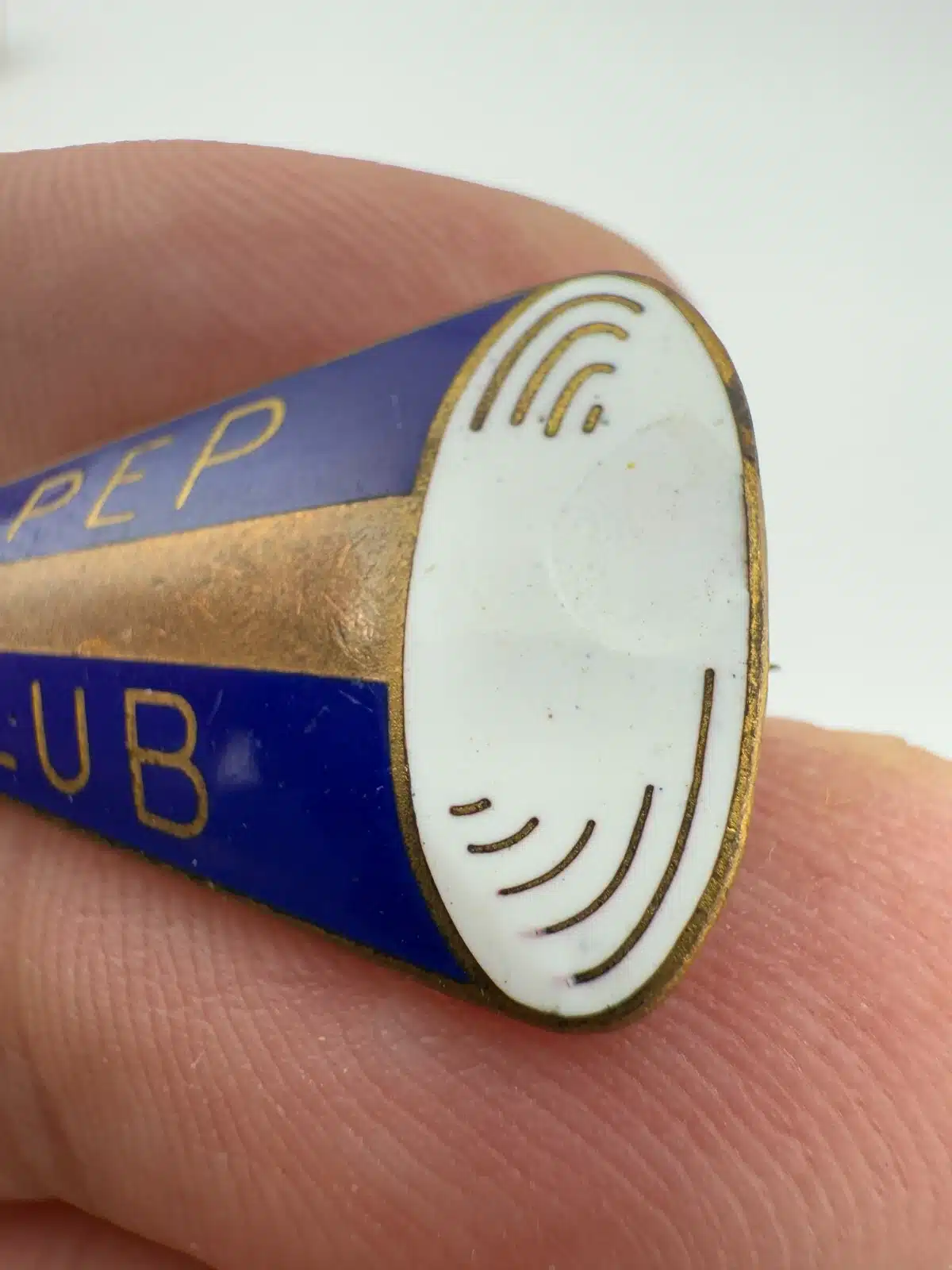 VINTAGE PEP CLUB LAPEL PIN – BLUE GOLD & WHITE *damage – read description*