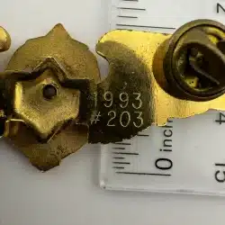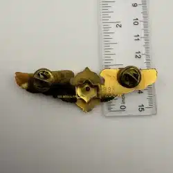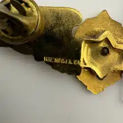 Condition: Used with marks including wear, buildup, age, flaws, etc. Unique piece. Produced by HAL MFG Los Angeles California, and etched 1993 #203. Unsure how the front badge overlay is attached, but there is a layer of glue between the rear wings and top badge layer to keep it in place as well. Please review all photos for exact condition of item and size.
