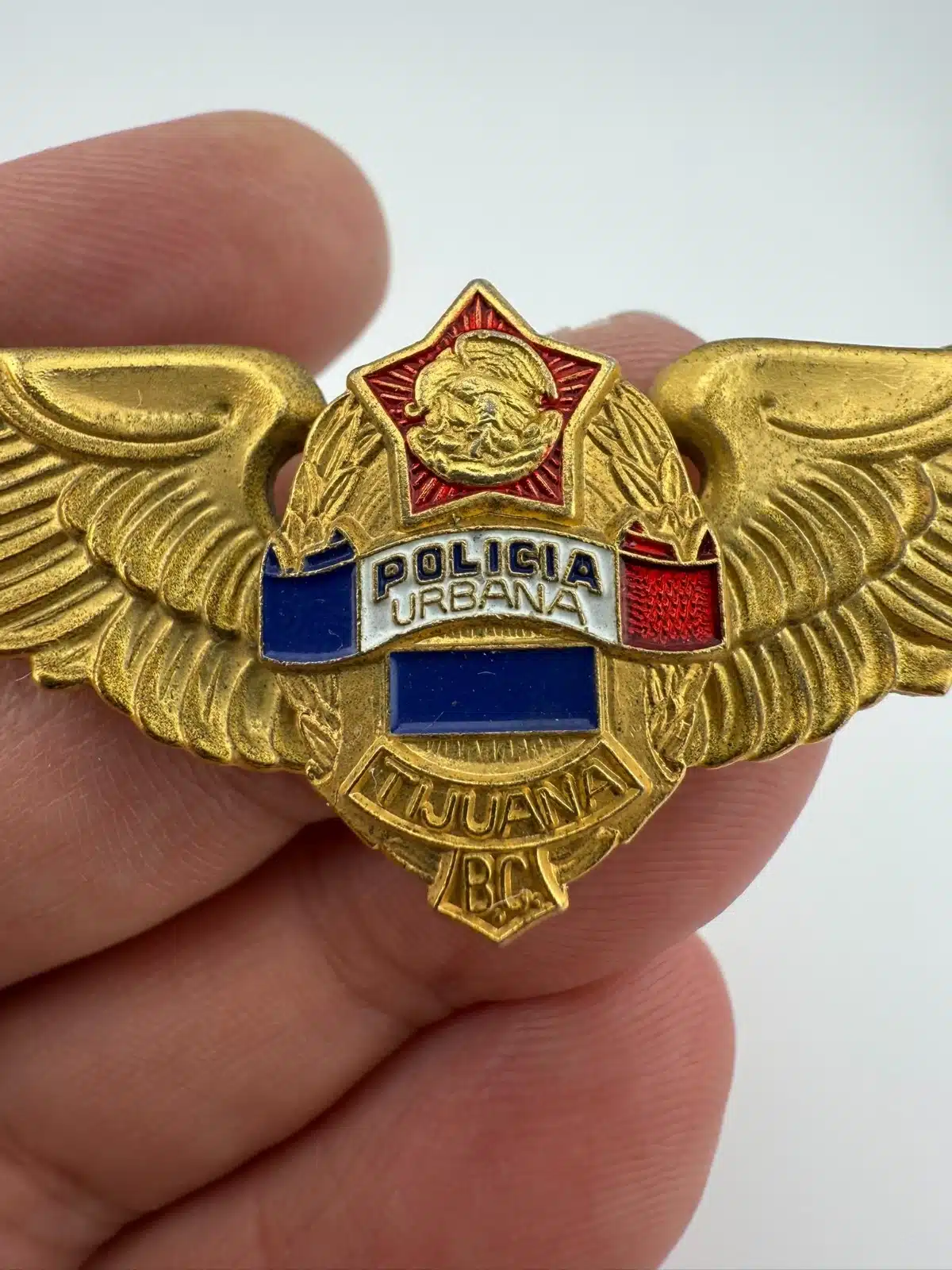 Vintage Policia Urbana pilot badge from Tijuana in Baja California. Solid find for collectors who enjoy international police insignia and hard-to-find regional badges.
