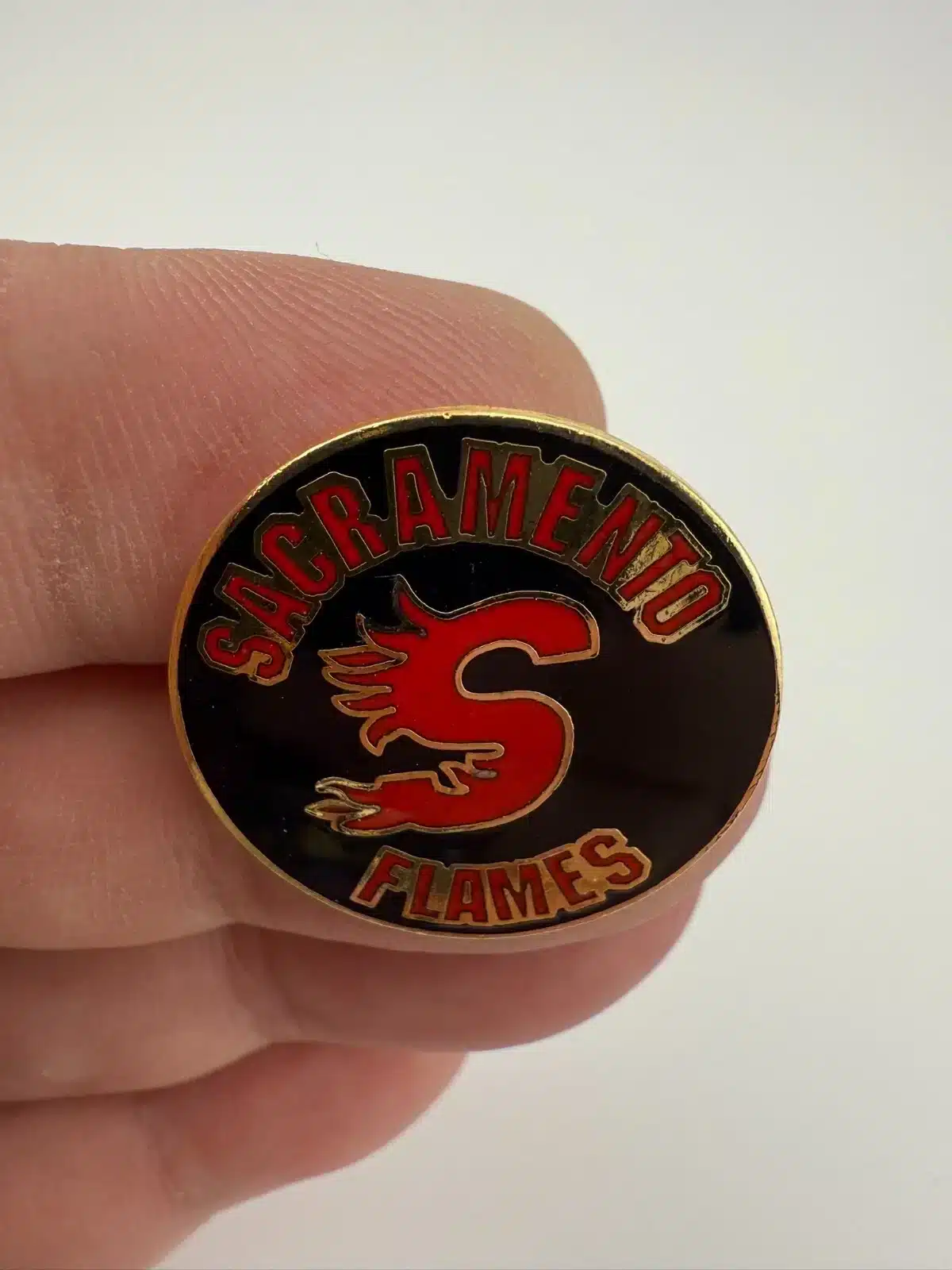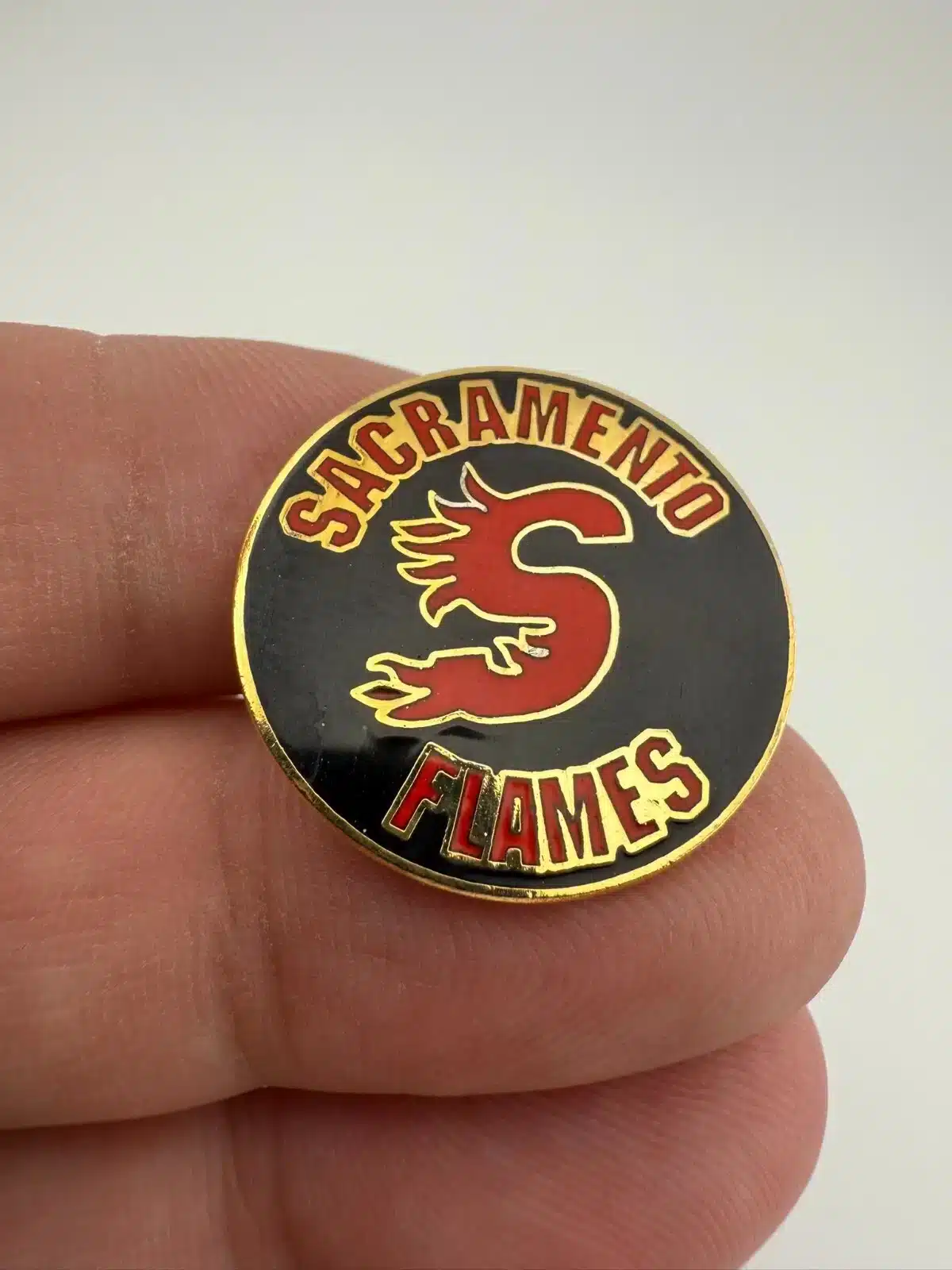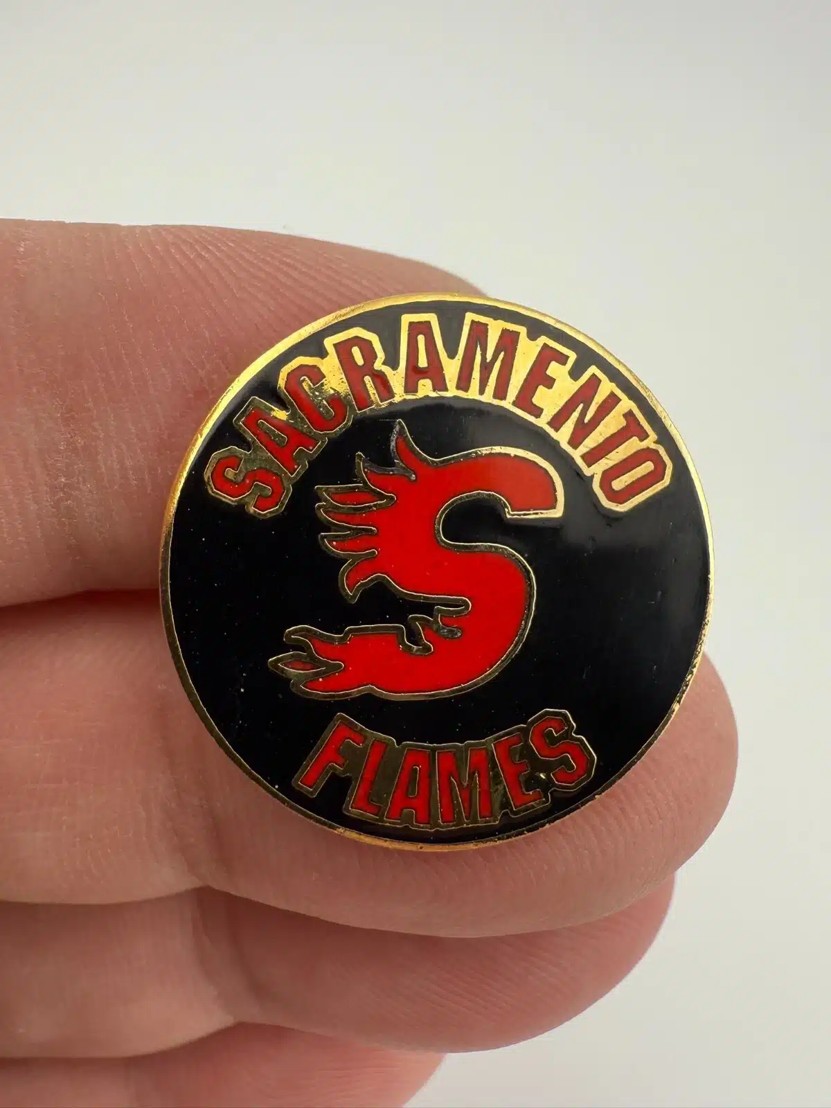 Vintage Sacramento Flames Youth Hockey Team Lapel Hat Pin – 1″ Size