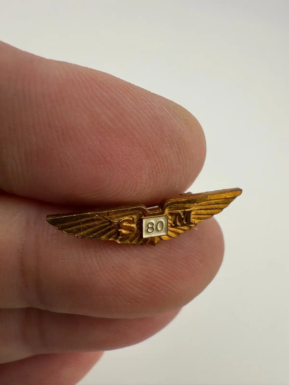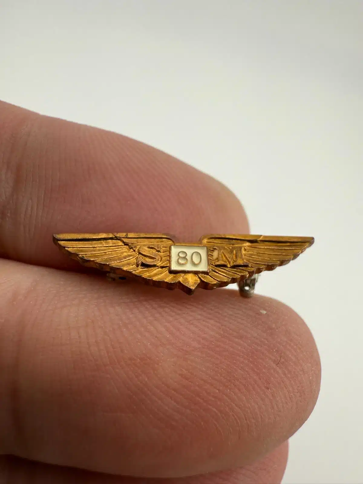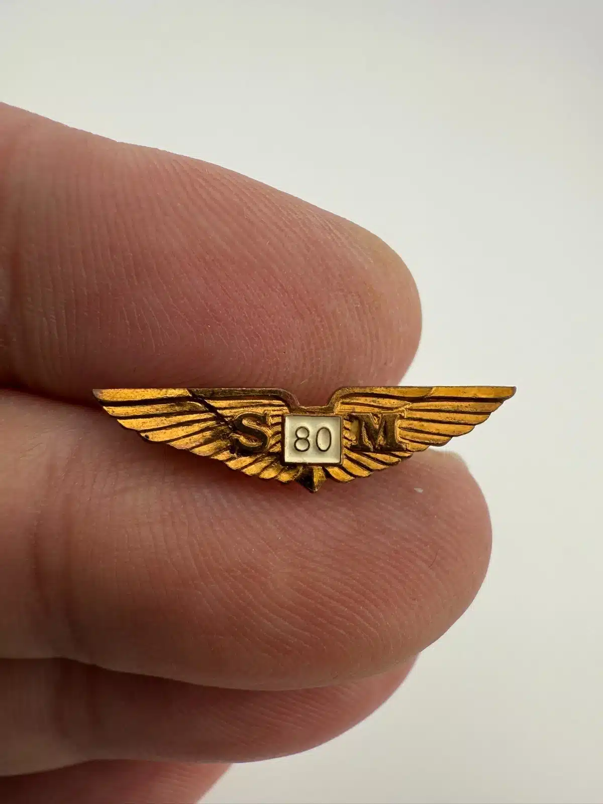 A small but rather cool vintage aircraft wings pin representing the Savoia-Marchetti SM.80, a historic Italian aircraft.