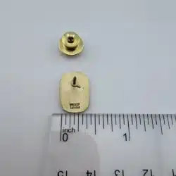 Pin measures just over 1/3 inch in width by just over 1/2 inch in height.