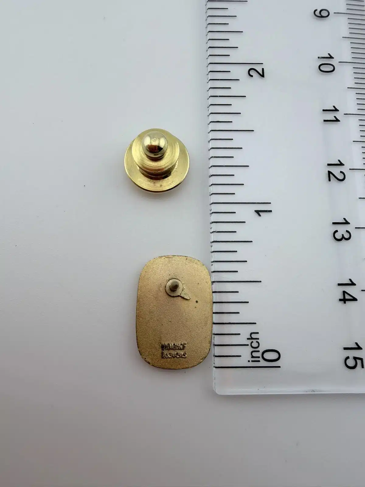 Pin measures just over 1/3 inch in width by just over 1/2 inch in height.
