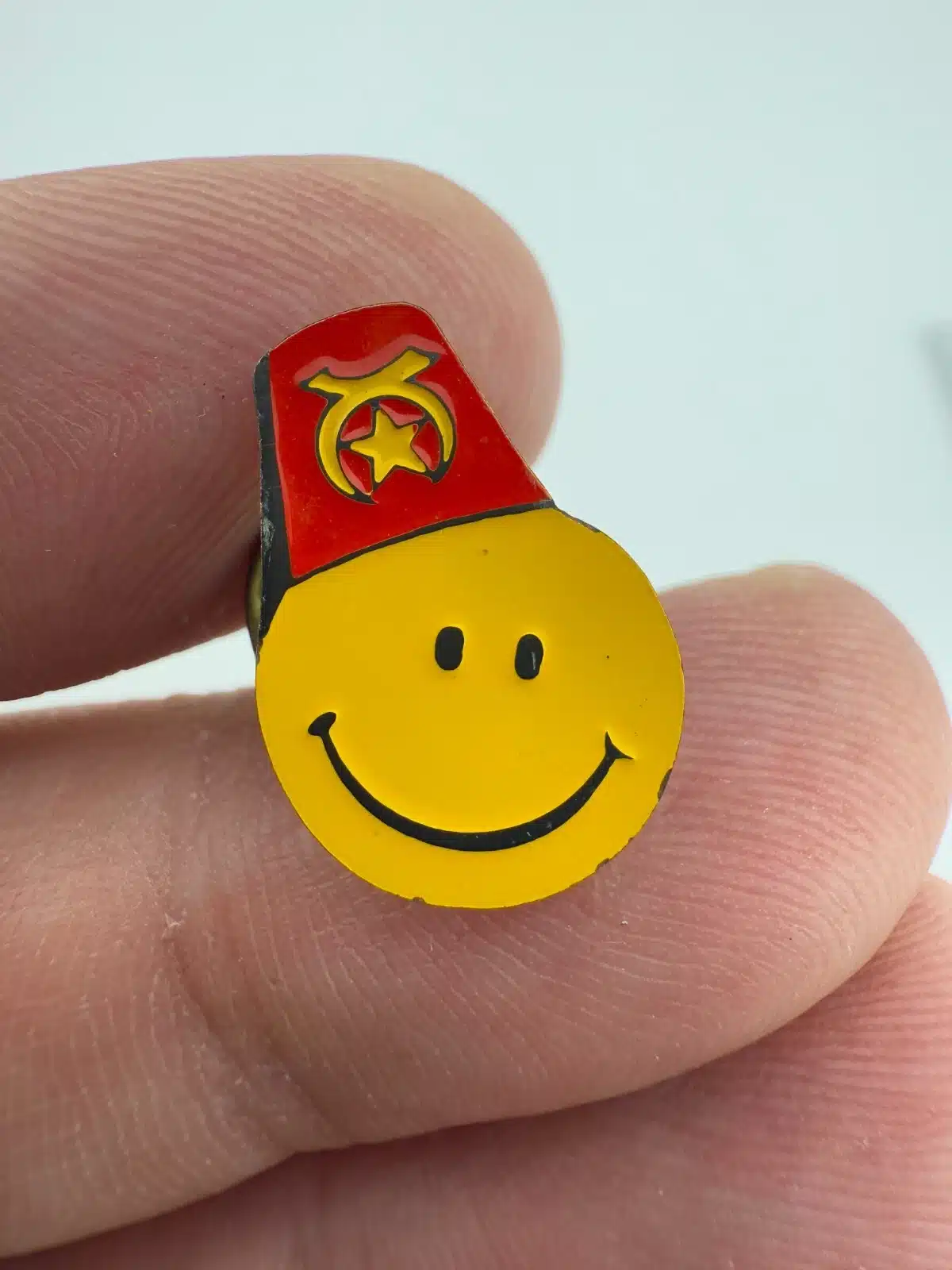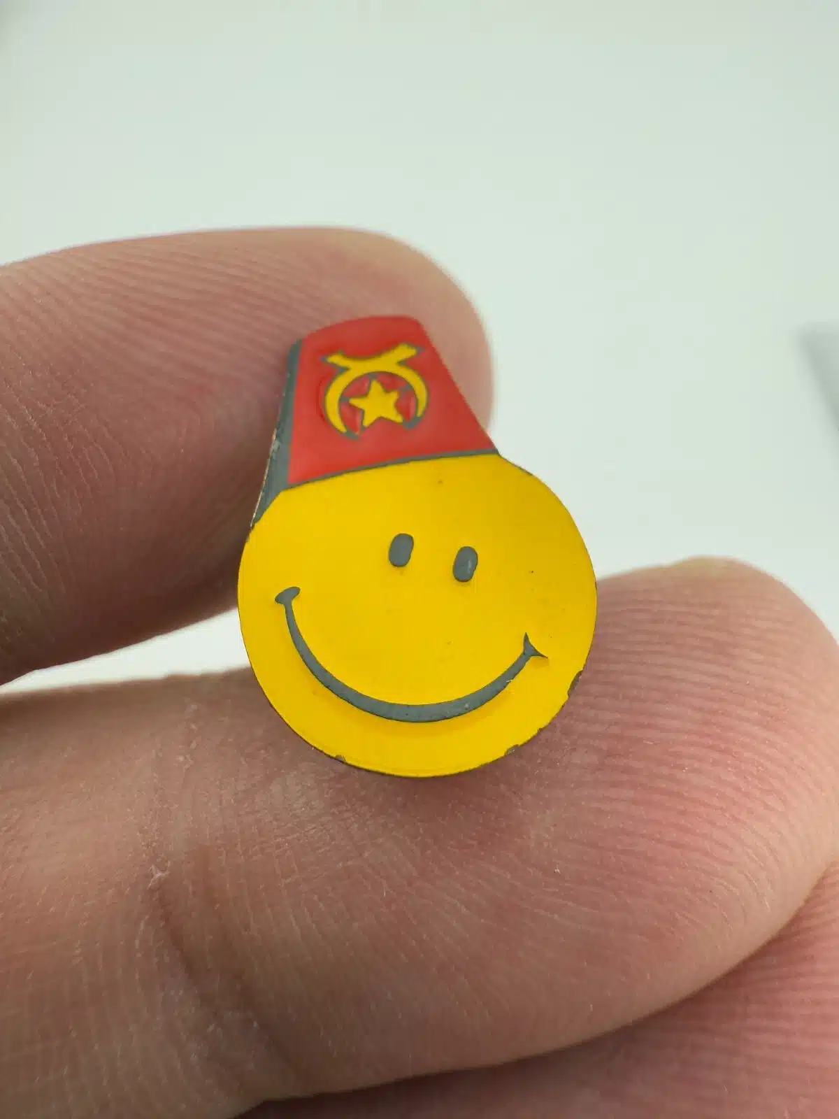 Vintage Shriners Fez Hat Happy Face Lapel Pin *dings / minor marks*