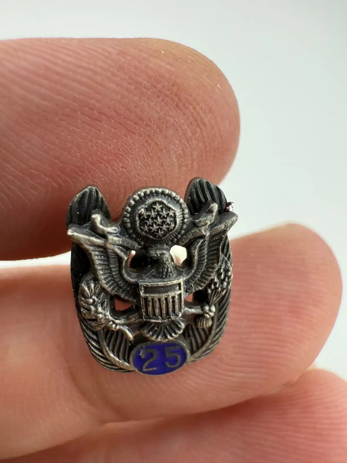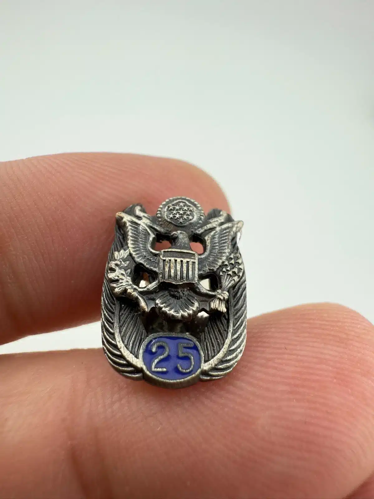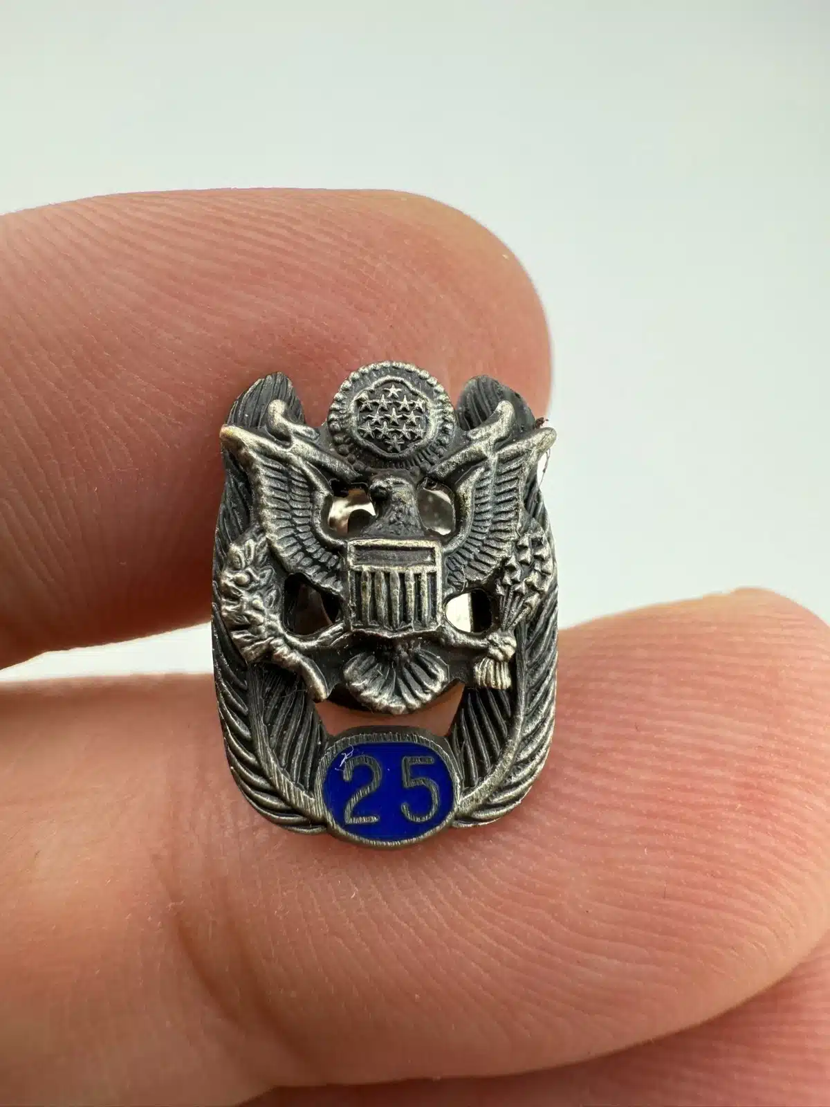 Vintage Silver Toned + Enamel ARMY 25 Year Service Lapel Pin – Unstamped