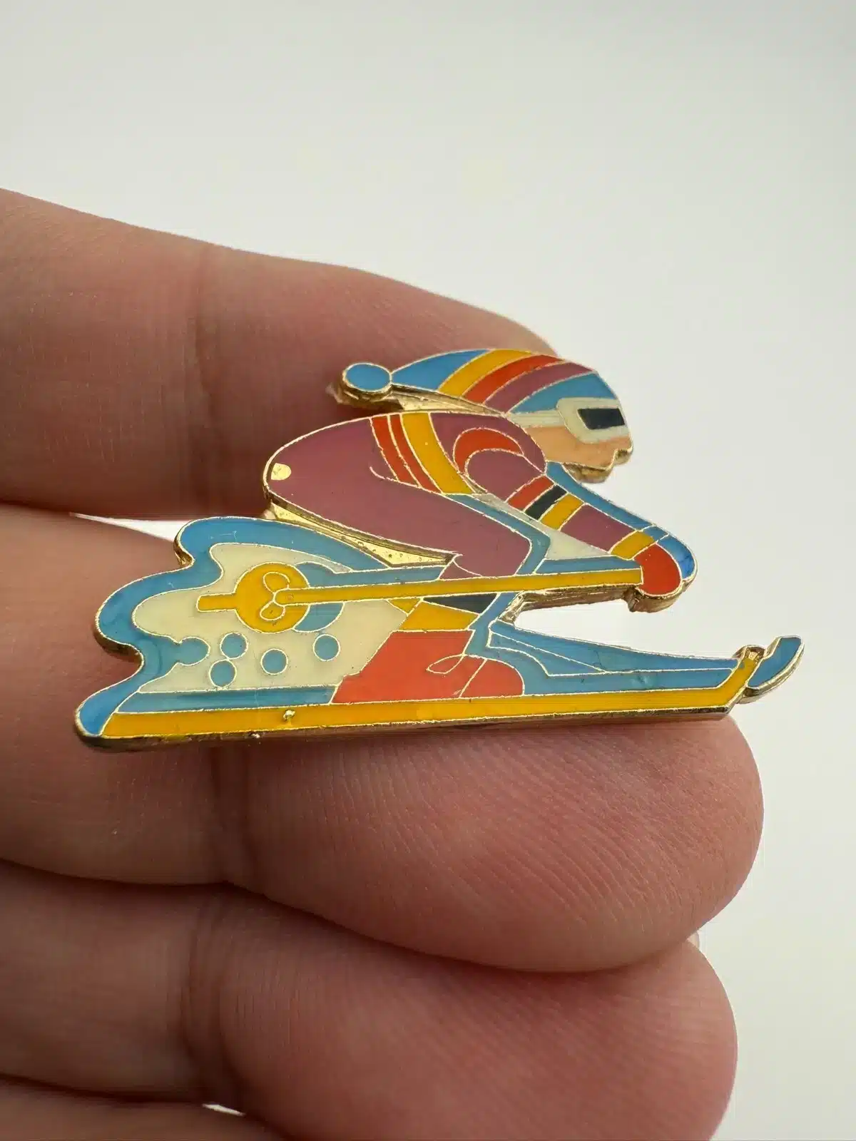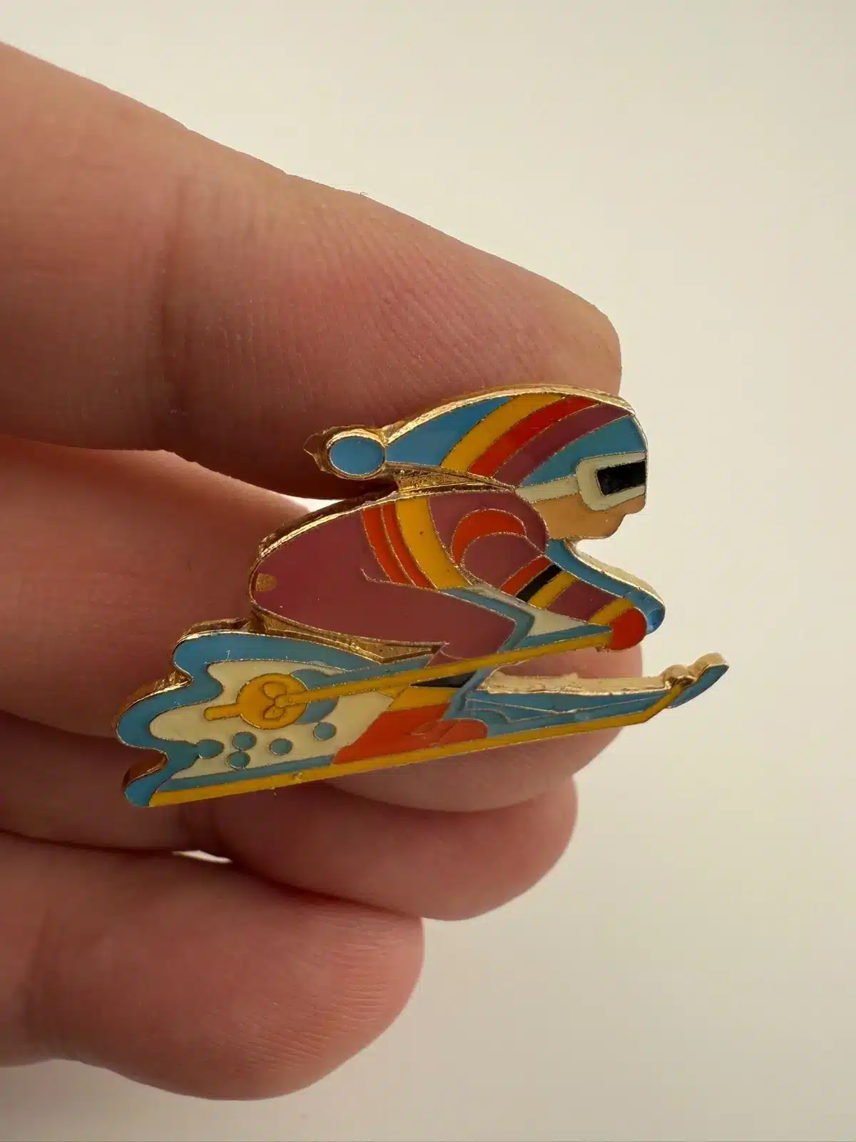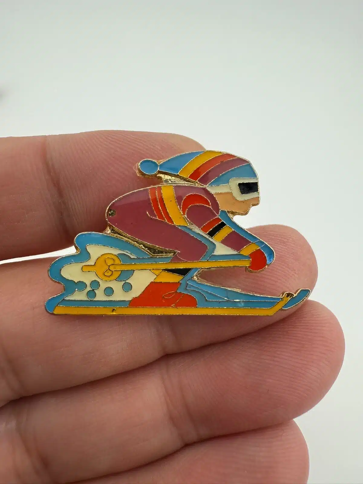 Vintage Skier Lapel Hat Pin – 80s Retro Ski Suit Skiwear Outfit – 1981 Centennia