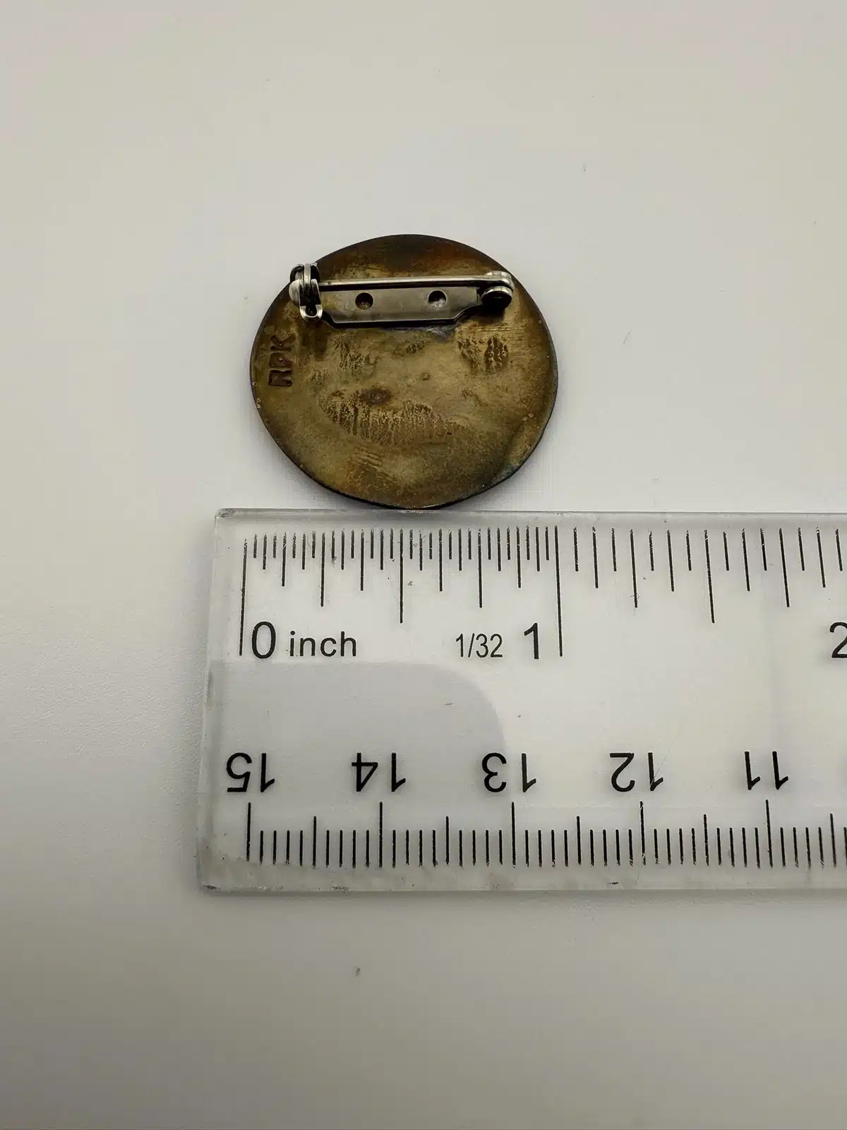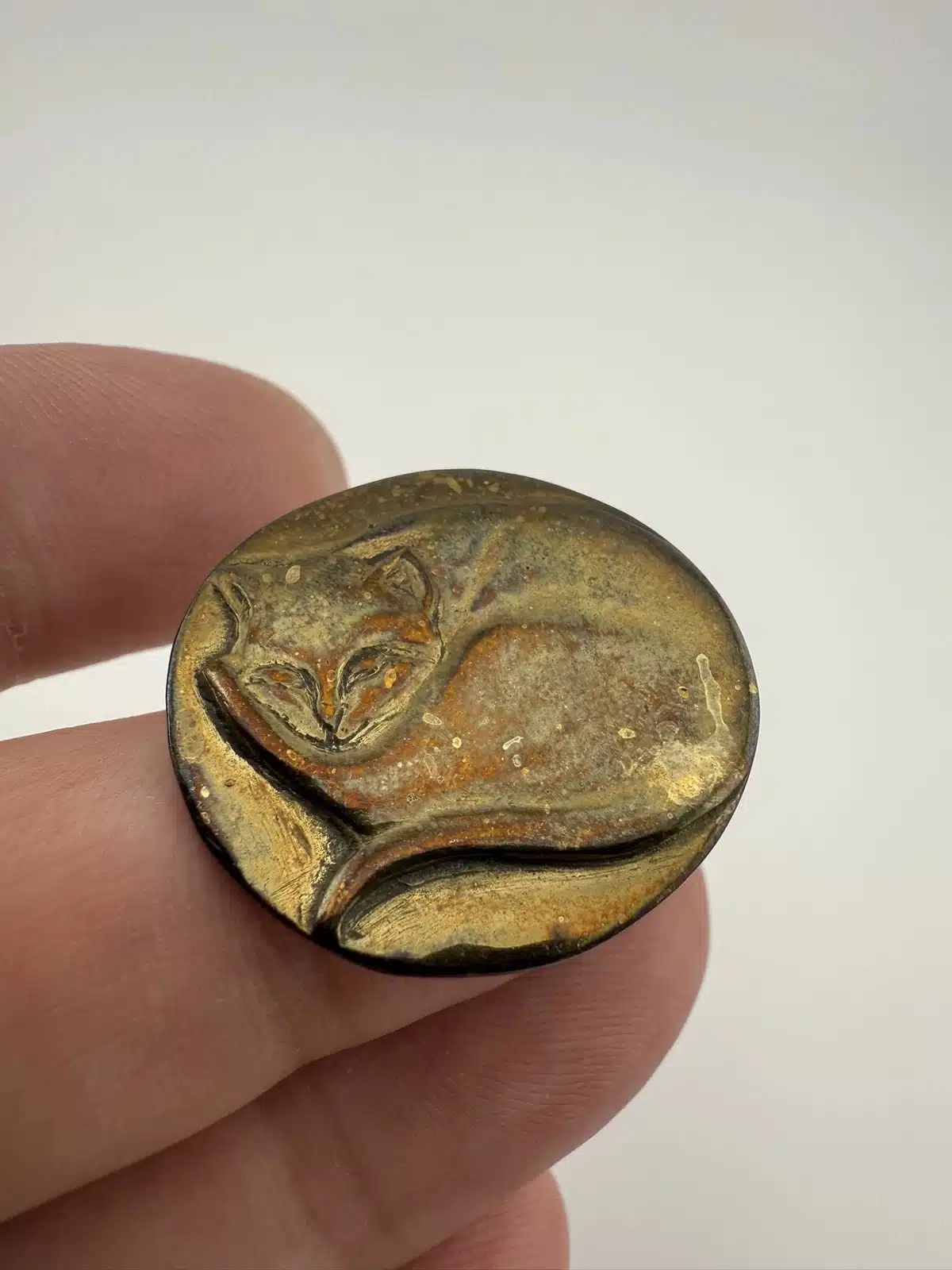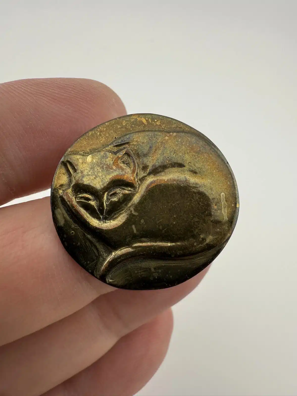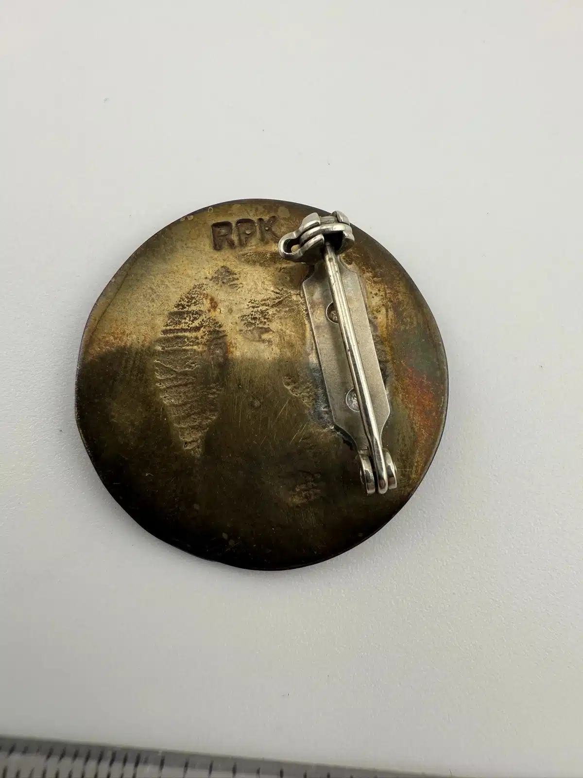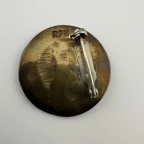 Rare brooch featuring a cat sleeping, stamped RPK on the rear. Metal – unknown alloy.