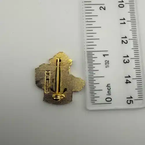 This vintage Smokey Bear pin features the iconic character holding a sign that reads ‘Prevent Forest Fires,’ showcasing his signature hat. The pin is in excellent condition and serves as a reminder of the important message of forest fire prevention.