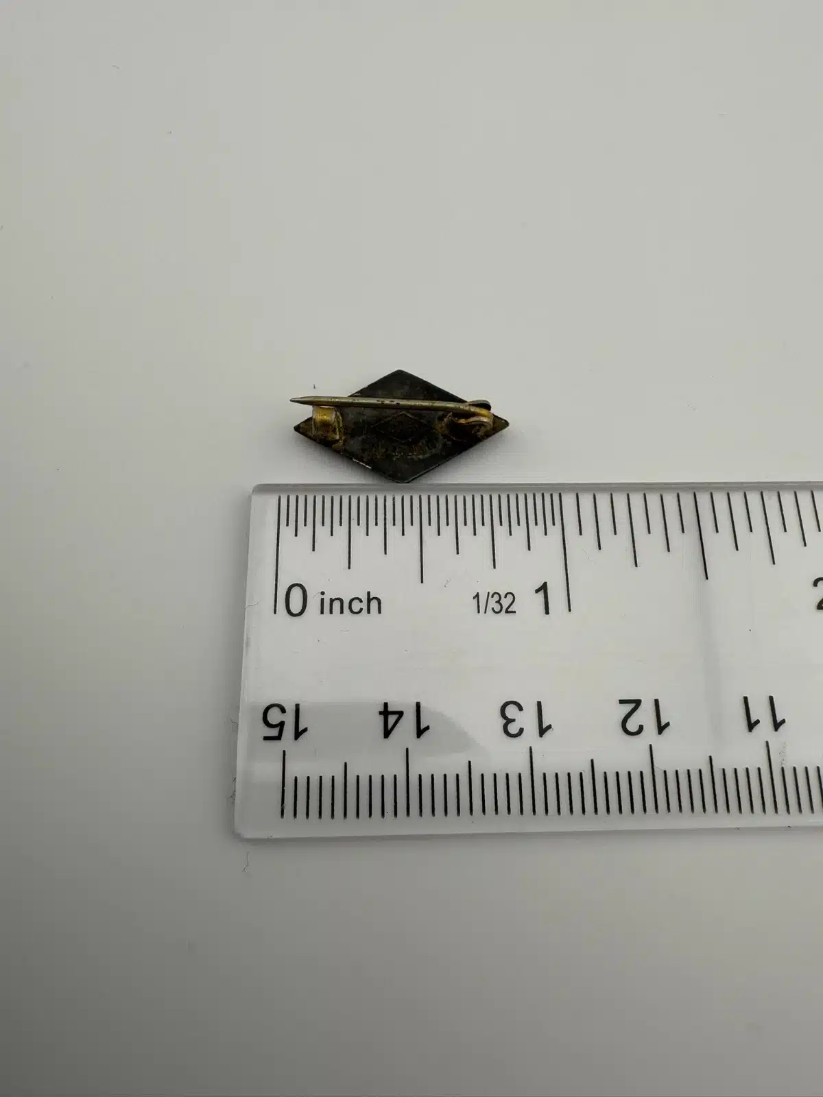 Used with marks and age. The clasp does not hold the needle, it’s too loose and too high. Tried to fix it with pliers but didn’t have much luck. Please see all photos for exact condition of item and size.