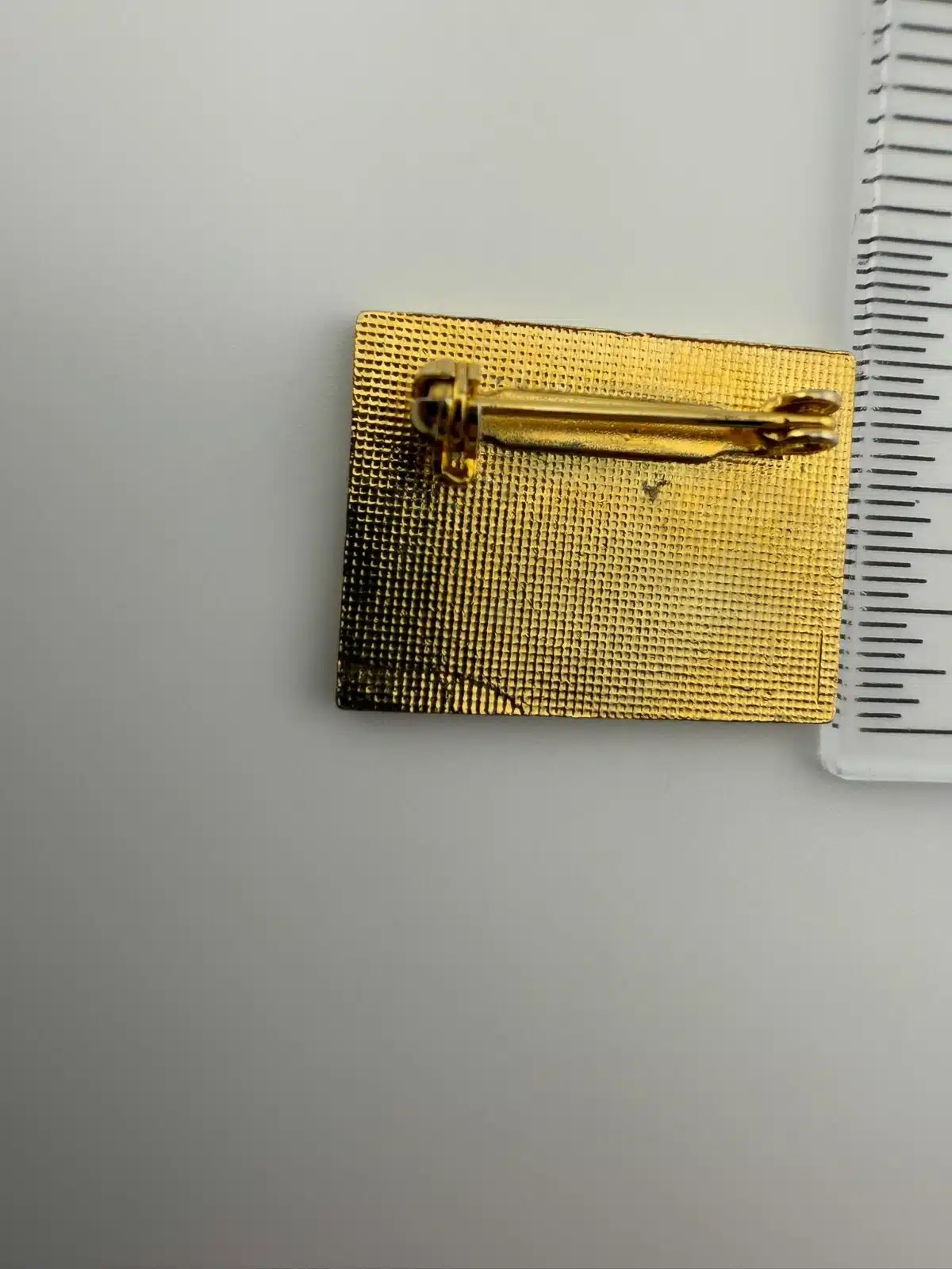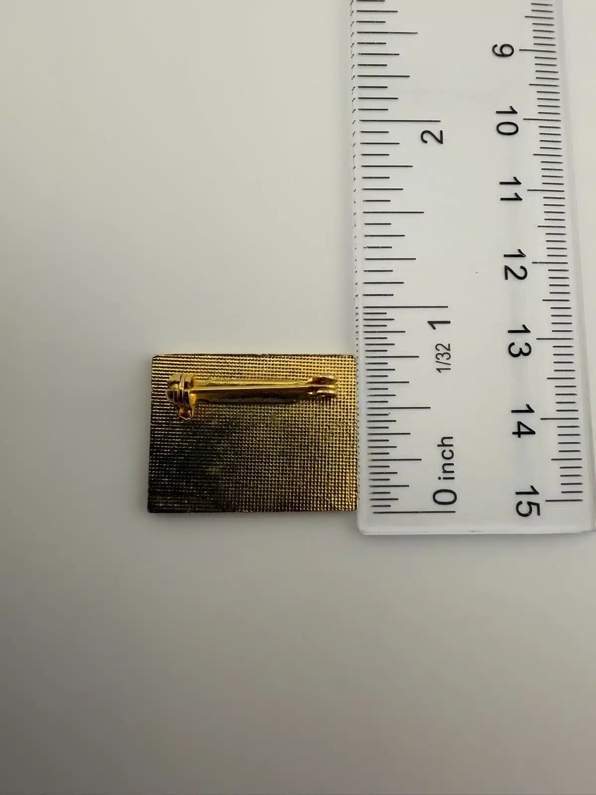 Used with minor marks. The lower back left of the pin has a manufacturing defect where part of the metal is not level with the rest. It’s not a crack or anything.