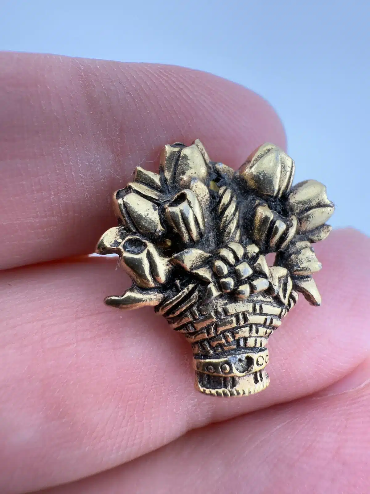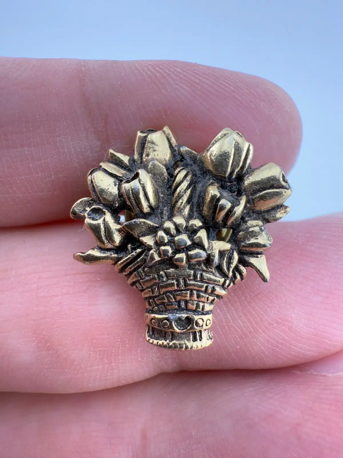Vintage TULIP FLOWER BASKET Lapel Pin by CTA – Gold Tone