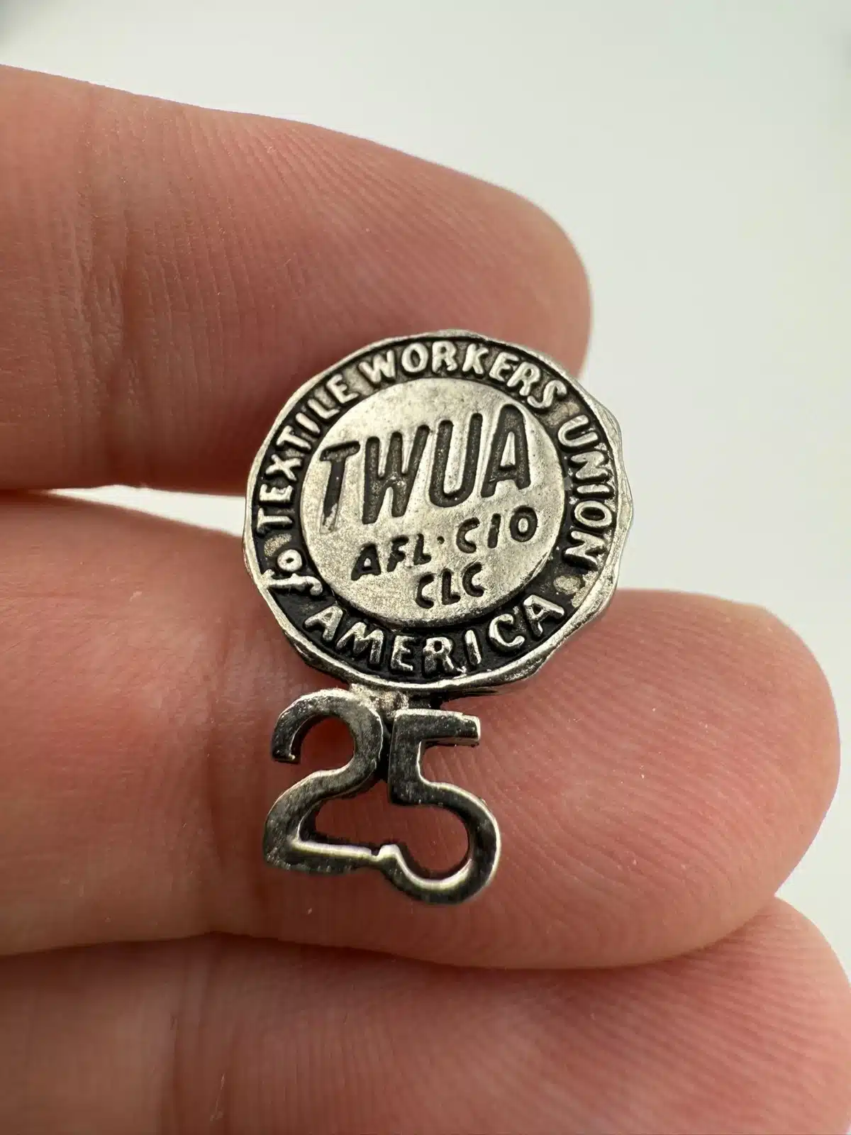 Vintage TWUA Textile Workers Union of America 25 Year Member Pin – IAM Local 64