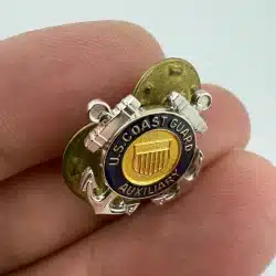 Vintage U.S. COAST GUARD AUXILIARY Double Clasp Pin – V-21-CG Stamp – Beautiful