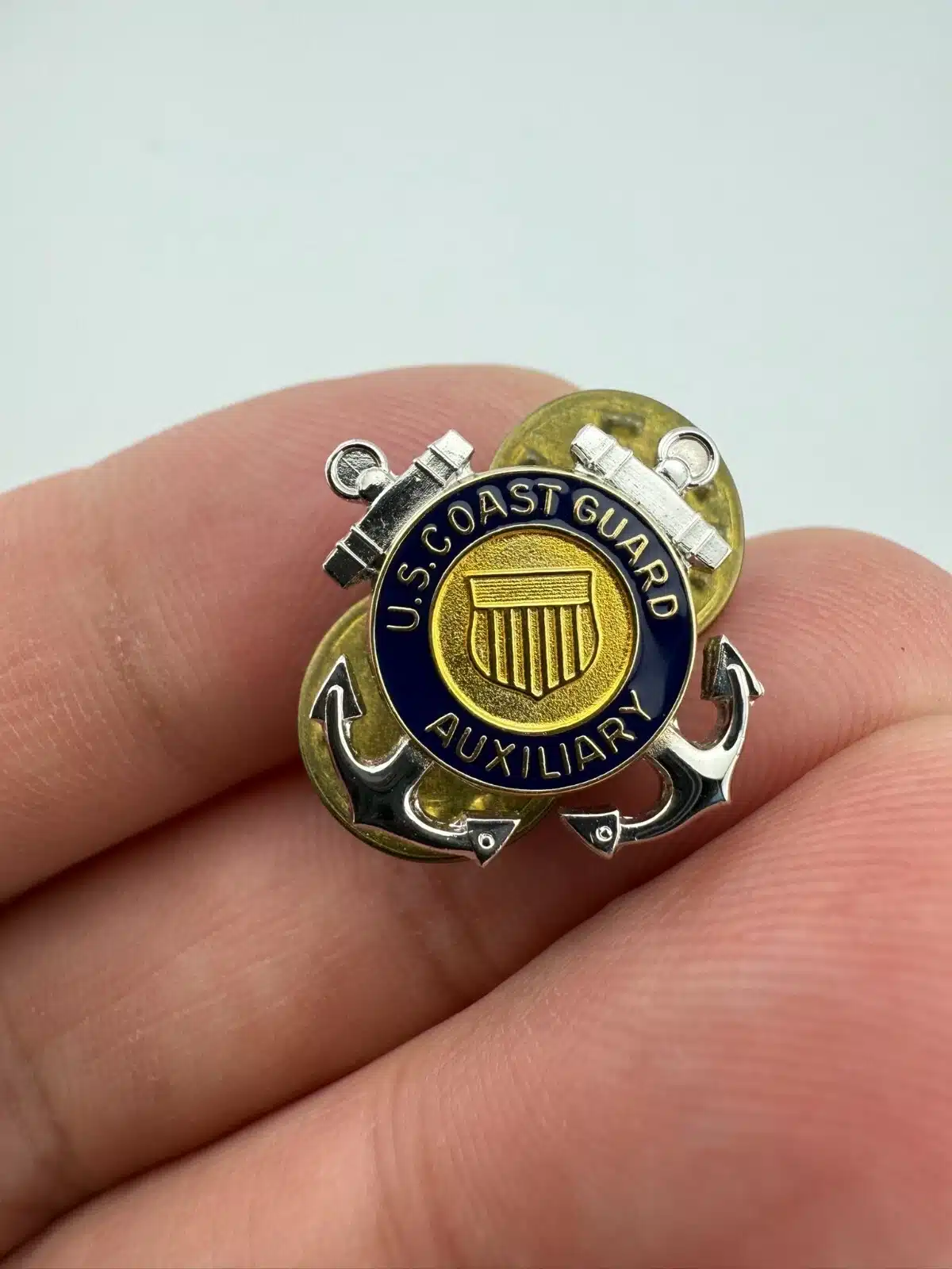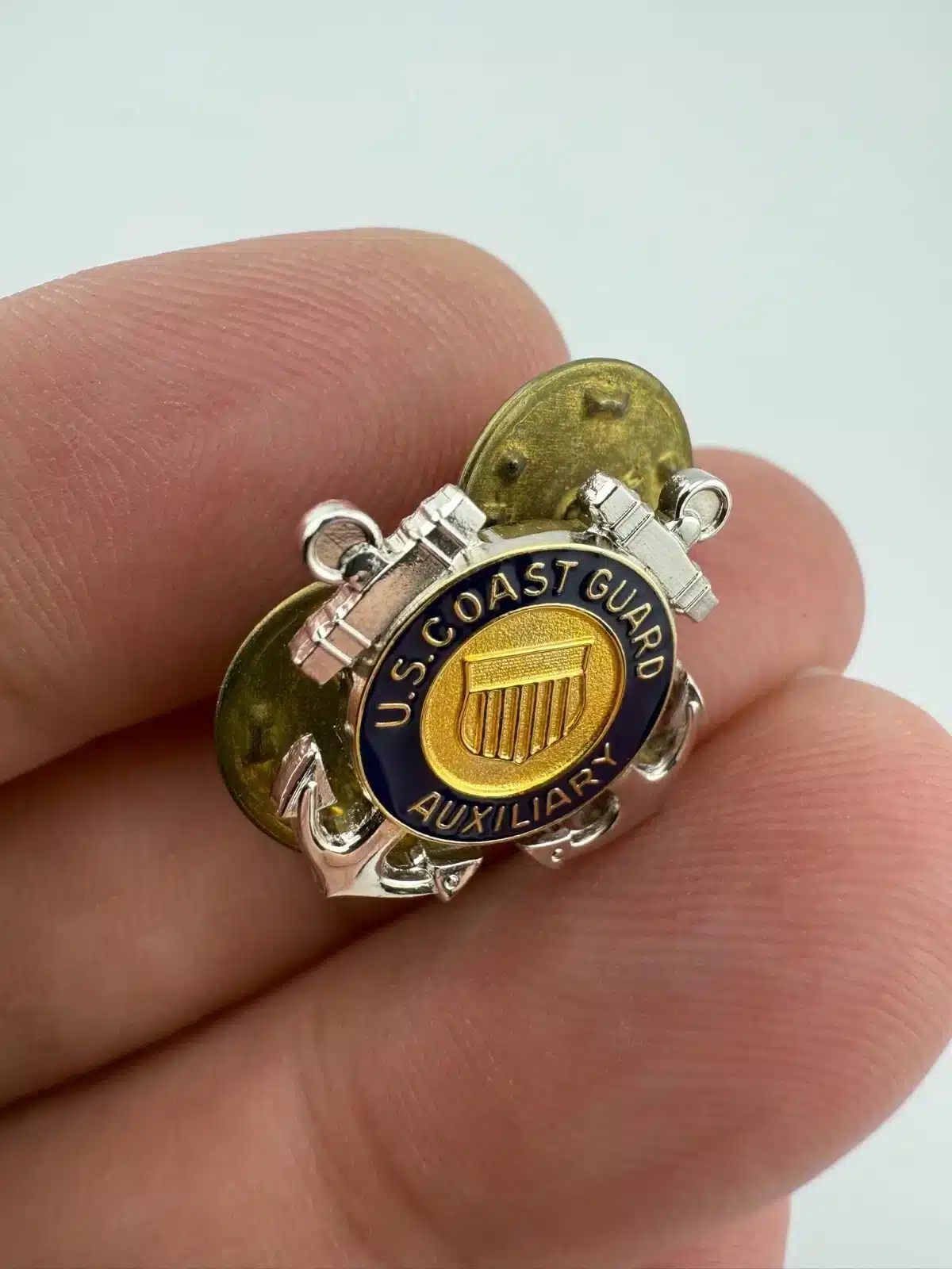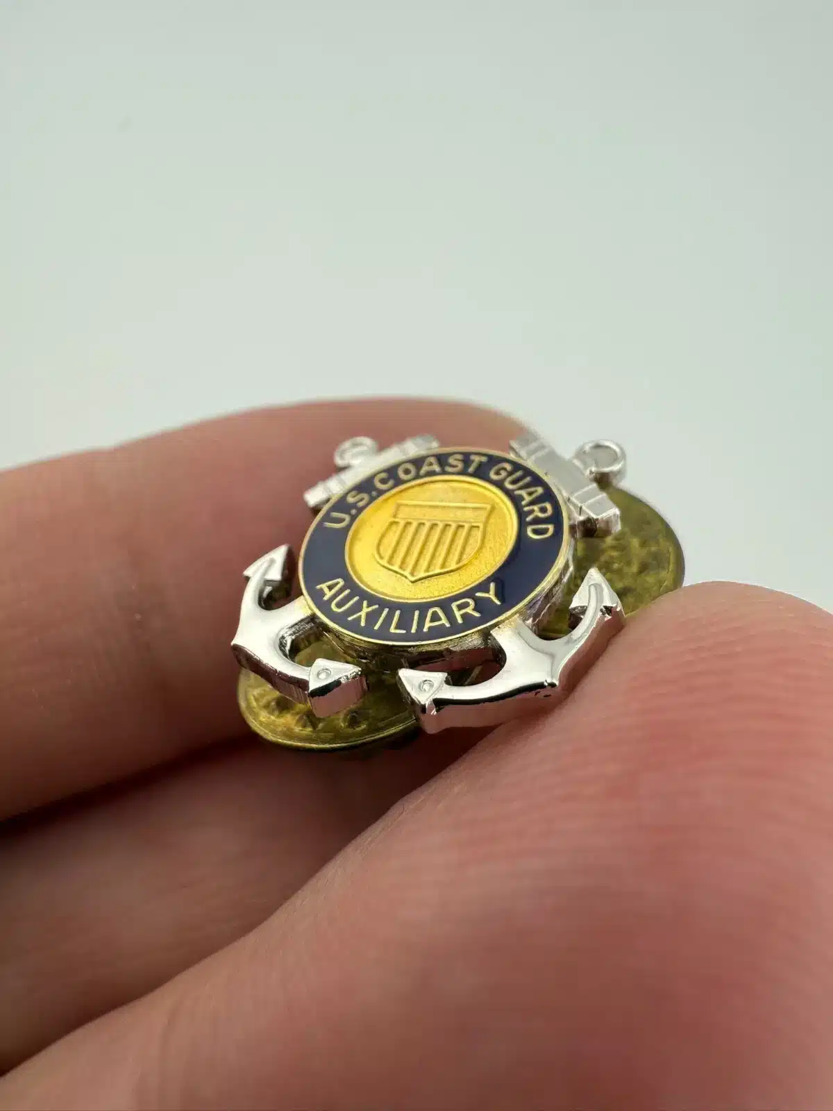 Vintage U.S. COAST GUARD AUXILIARY Double Clasp Pin – V-21-CG Stamp – Beautiful