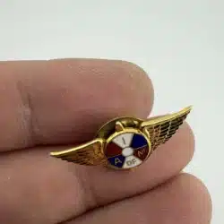 This vintage lapel pin features the iconic winged I A of M design associated with the International Association of Machinists, symbolizing the craftsmanship and dedication of its members. The pin’s intricate detailing and classic design reflect the rich history of the labor movement and the machinist trade.