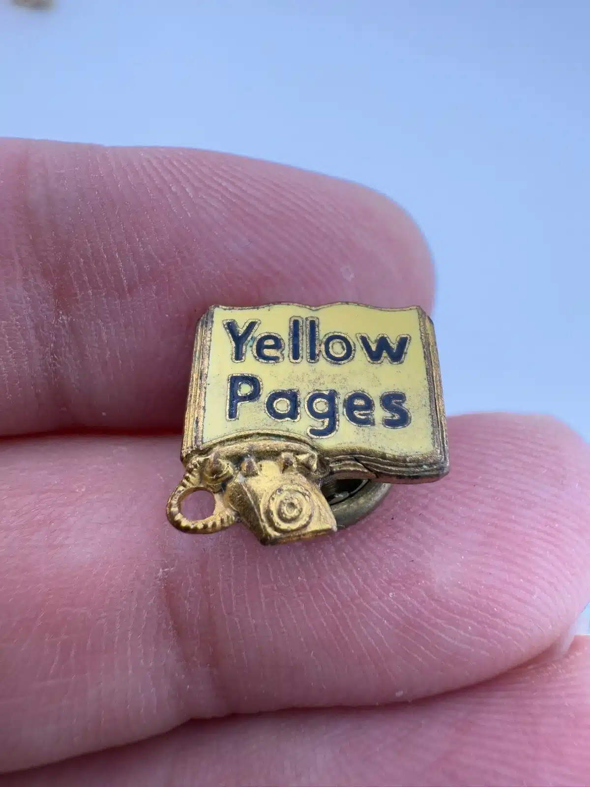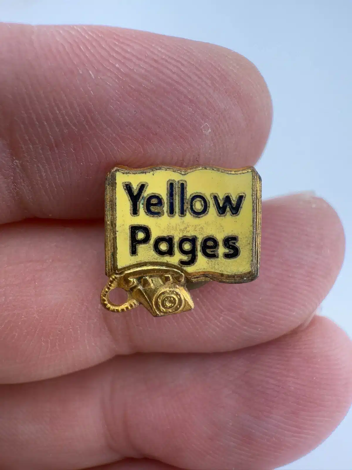 Vintage Yellow Pages Screwback Pin *read full description*