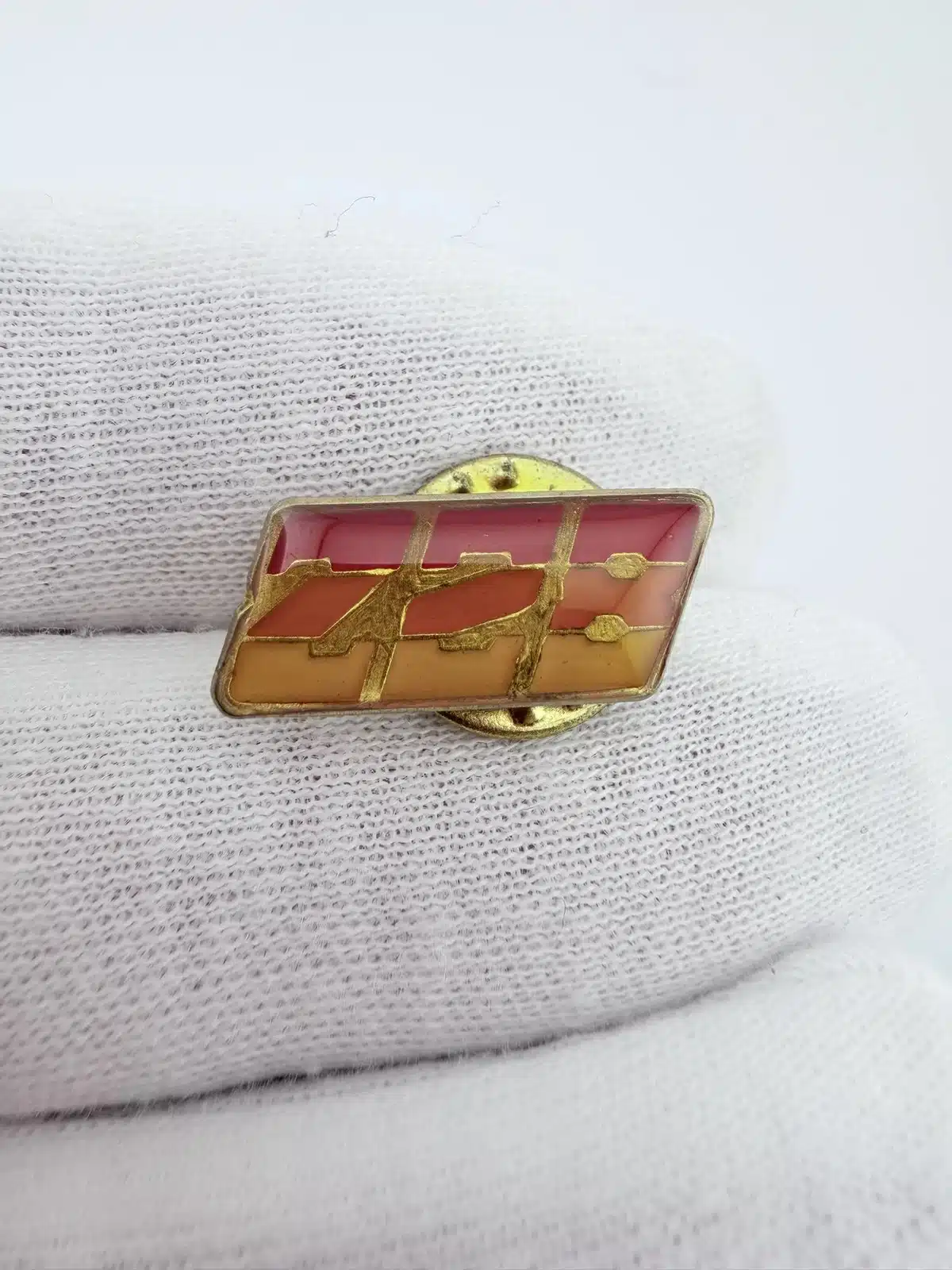 This vintage pin showcases the iconic Z28 Camaro lettering, prominently displaying the letters ZTD. The design incorporates red, orange, and yellow bars, reflecting the bold spirit of the classic muscle car era.