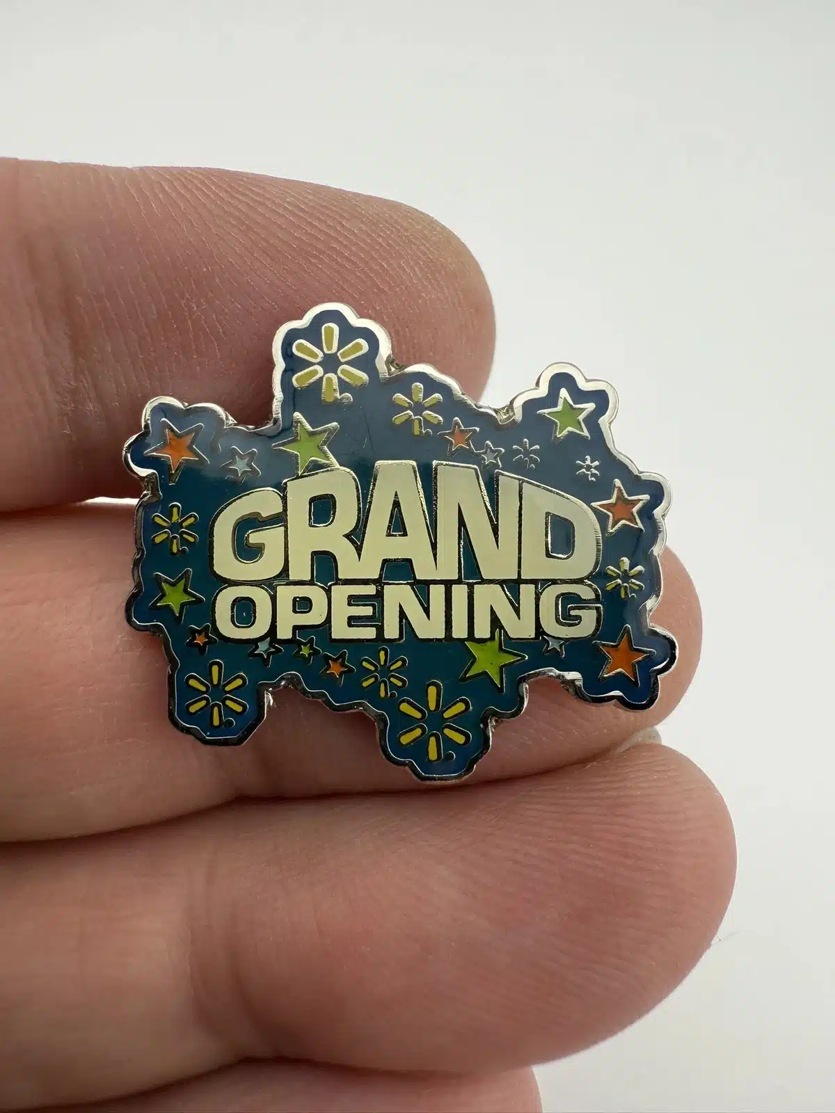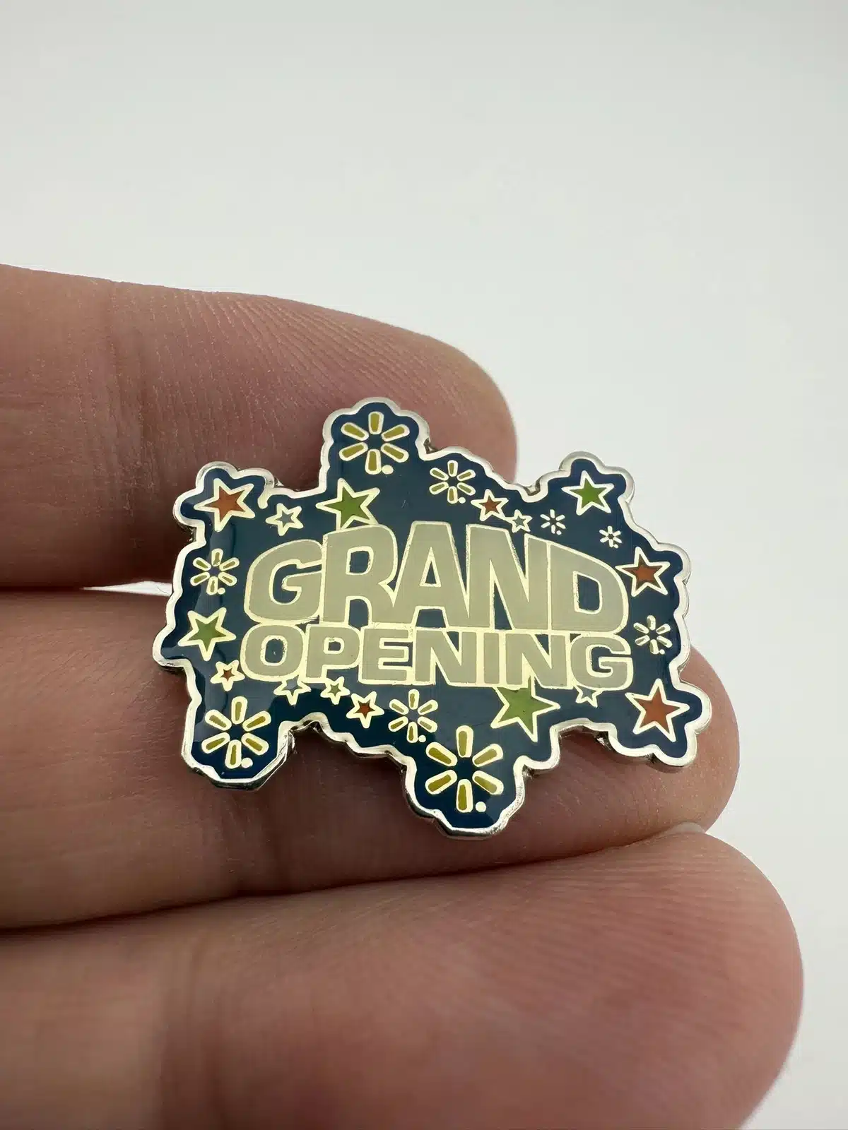 This vibrant pin commemorates a Walmart grand opening, featuring a dynamic design of fireworks that symbolize celebration and community. The colorful imagery captures the excitement of new beginnings associated with the launch of a Walmart store.