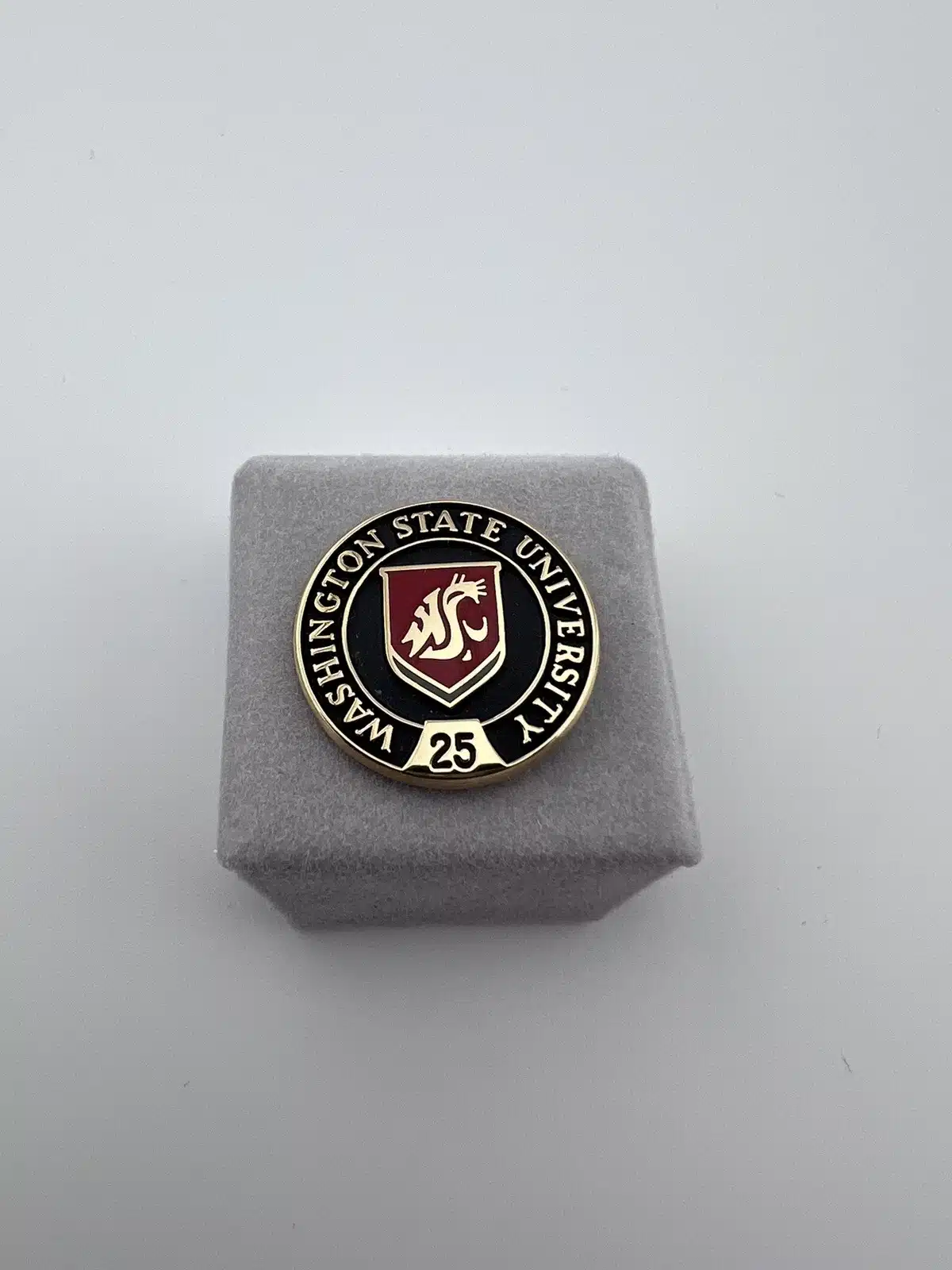 Beautiful Washington State University 25 Year Pin And Tie Tack in perfect shape. Case has minor scuff marks.