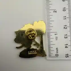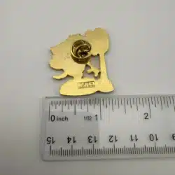 This whimsical pin features Taz, the Tasmanian Devil from Warner Brothers’ Looney Tunes, depicted on a scale while devouring a burger, showcasing his iconic, chaotic personality. The vibrant colors and playful design capture the essence of this beloved character, making it a delightful piece for collectors of animated memorabilia.