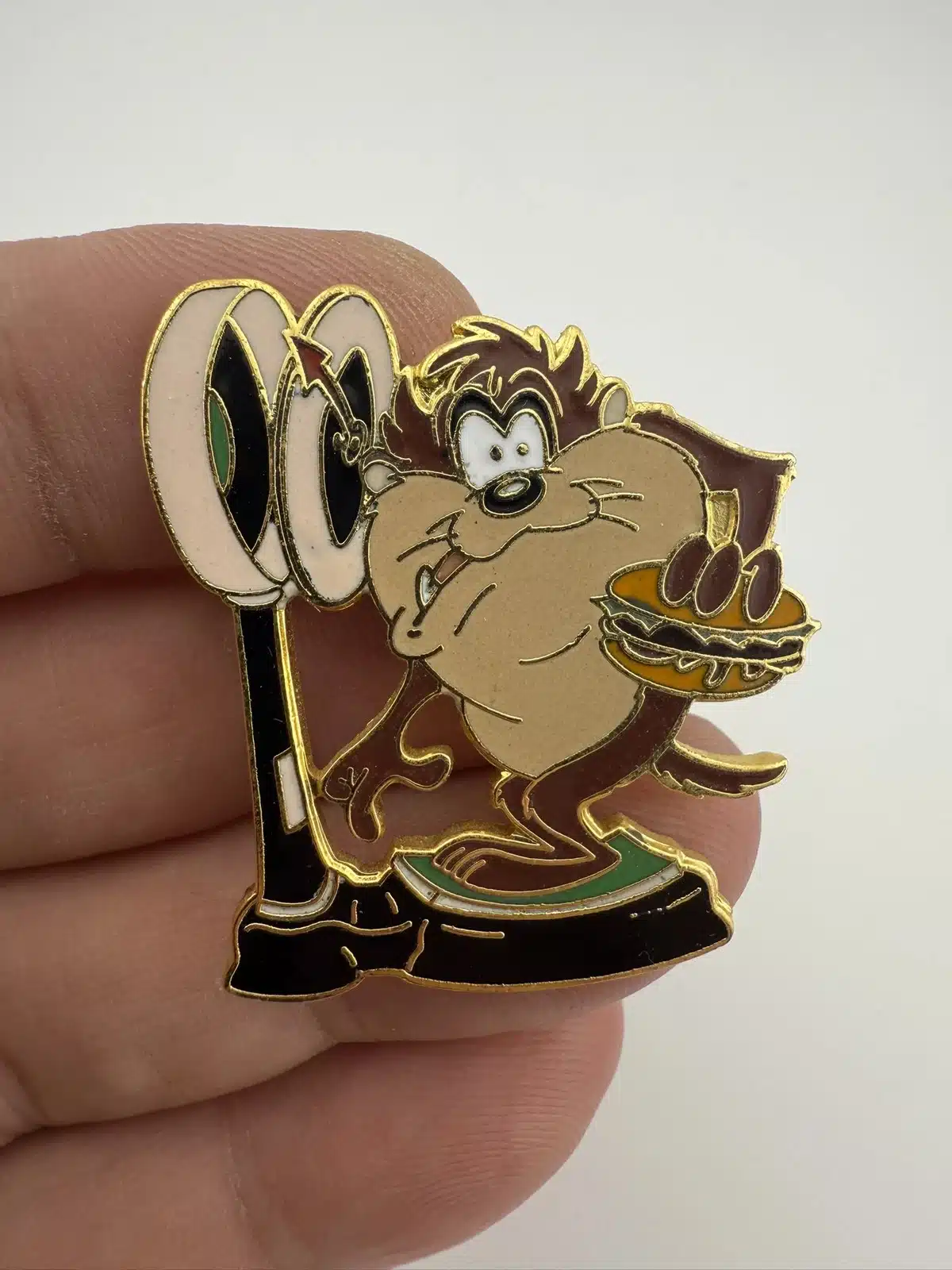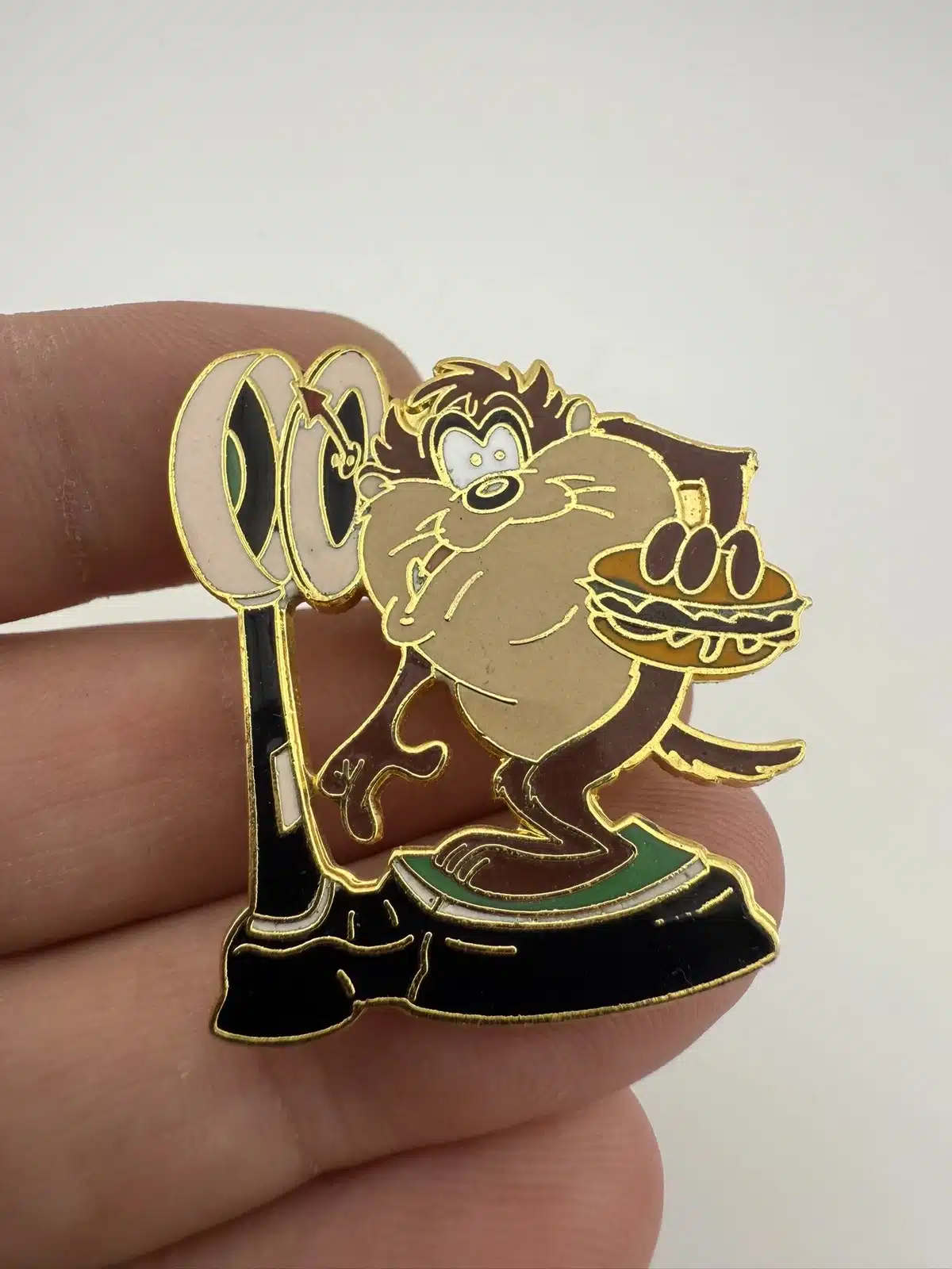 WB Warner Brothers Looney Tunes Taz Tasmanian Devil On Scale Eating Burger Pin