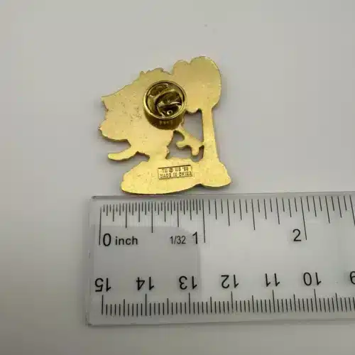 This whimsical pin features Taz, the Tasmanian Devil from Warner Brothers’ Looney Tunes, depicted on a scale while devouring a burger, showcasing his iconic, chaotic personality. The vibrant colors and playful design capture the essence of this beloved character, making it a delightful piece for collectors of animated memorabilia.