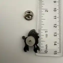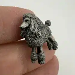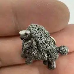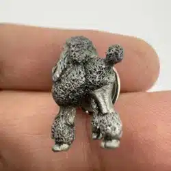 This charming lapel pin features a detailed depiction of a poodle, showcasing its distinctive curly fur and elegant posture. Poodles are known for their intelligence and grace, making them a beloved breed among dog enthusiasts.