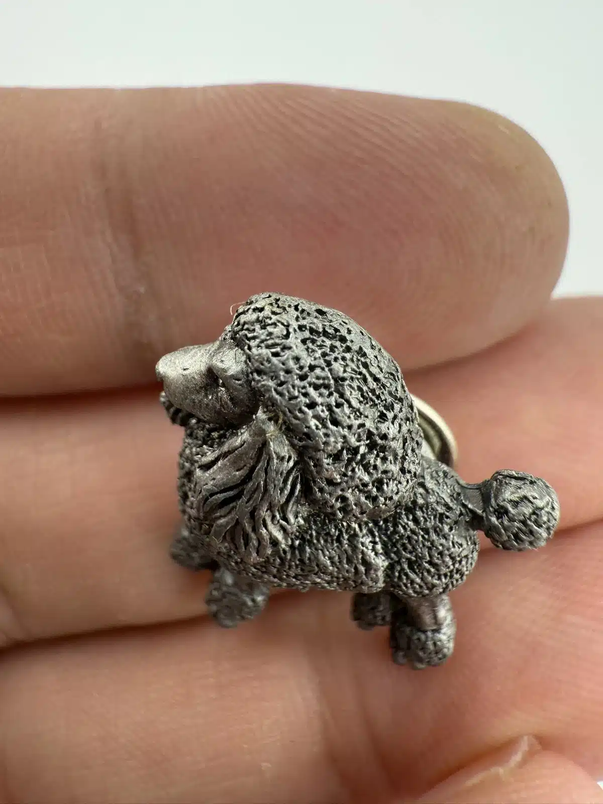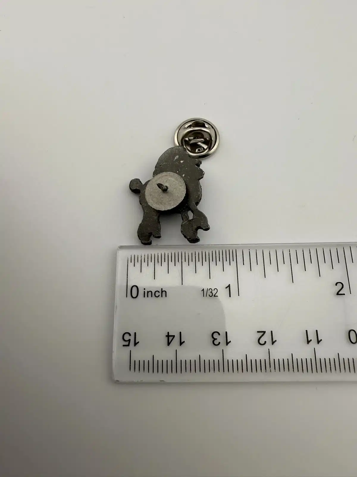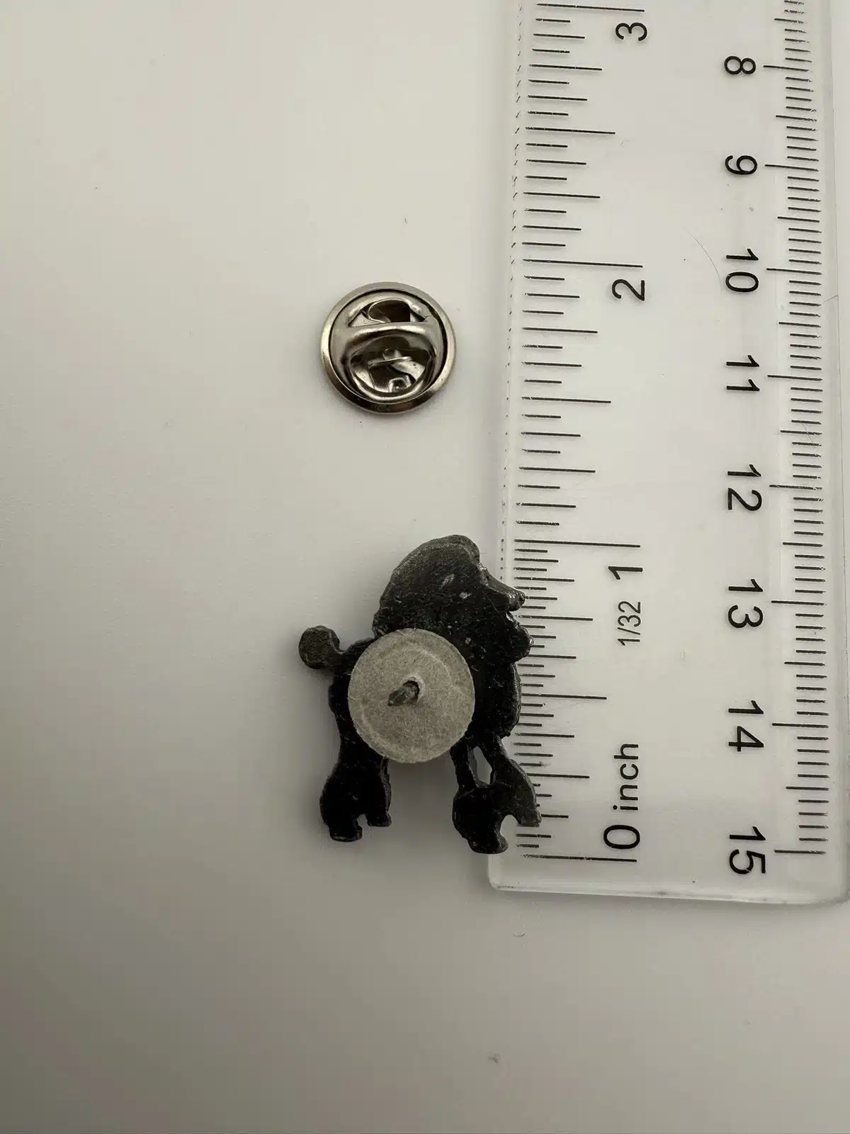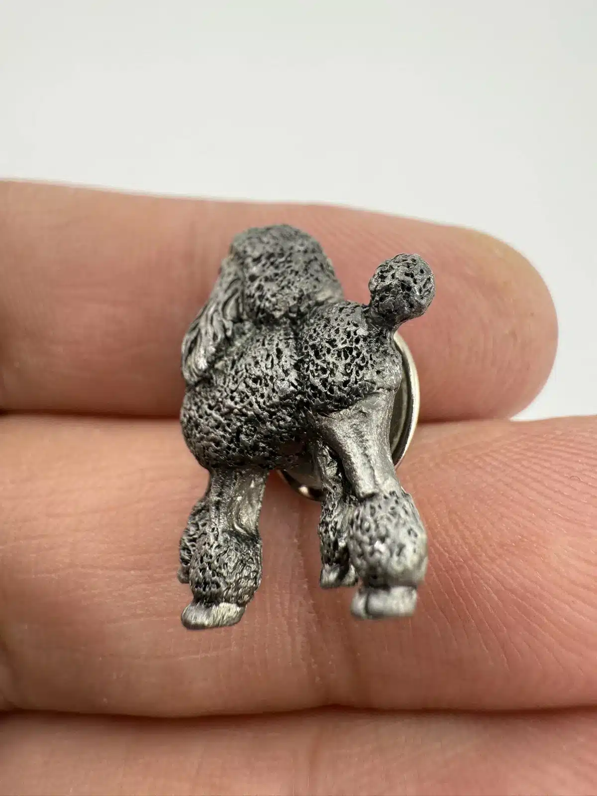 This charming lapel pin features a detailed depiction of a poodle, showcasing its distinctive curly fur and elegant posture. Poodles are known for their intelligence and grace, making them a beloved breed among dog enthusiasts.