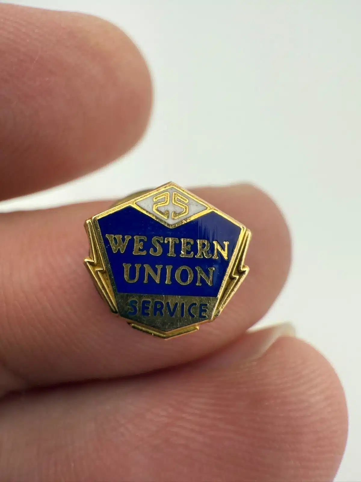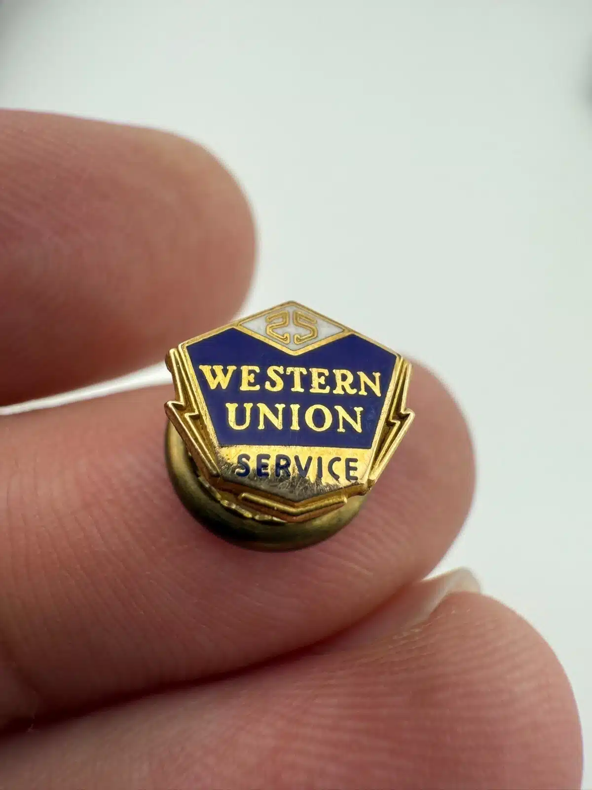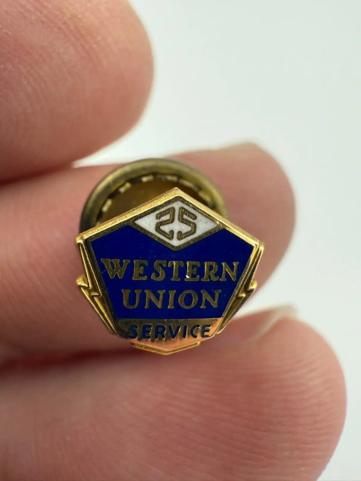 Western Union 25 Year Service Award Screwback Pin – 1/10 10K GF – *TINY*