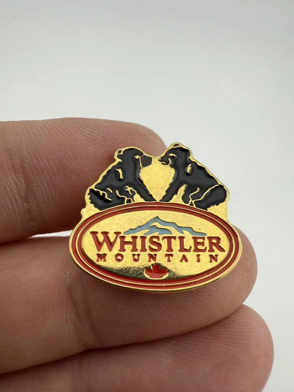 Fun Whistler Mountain pin featuring 2 black bears along with the red maple leaf.
