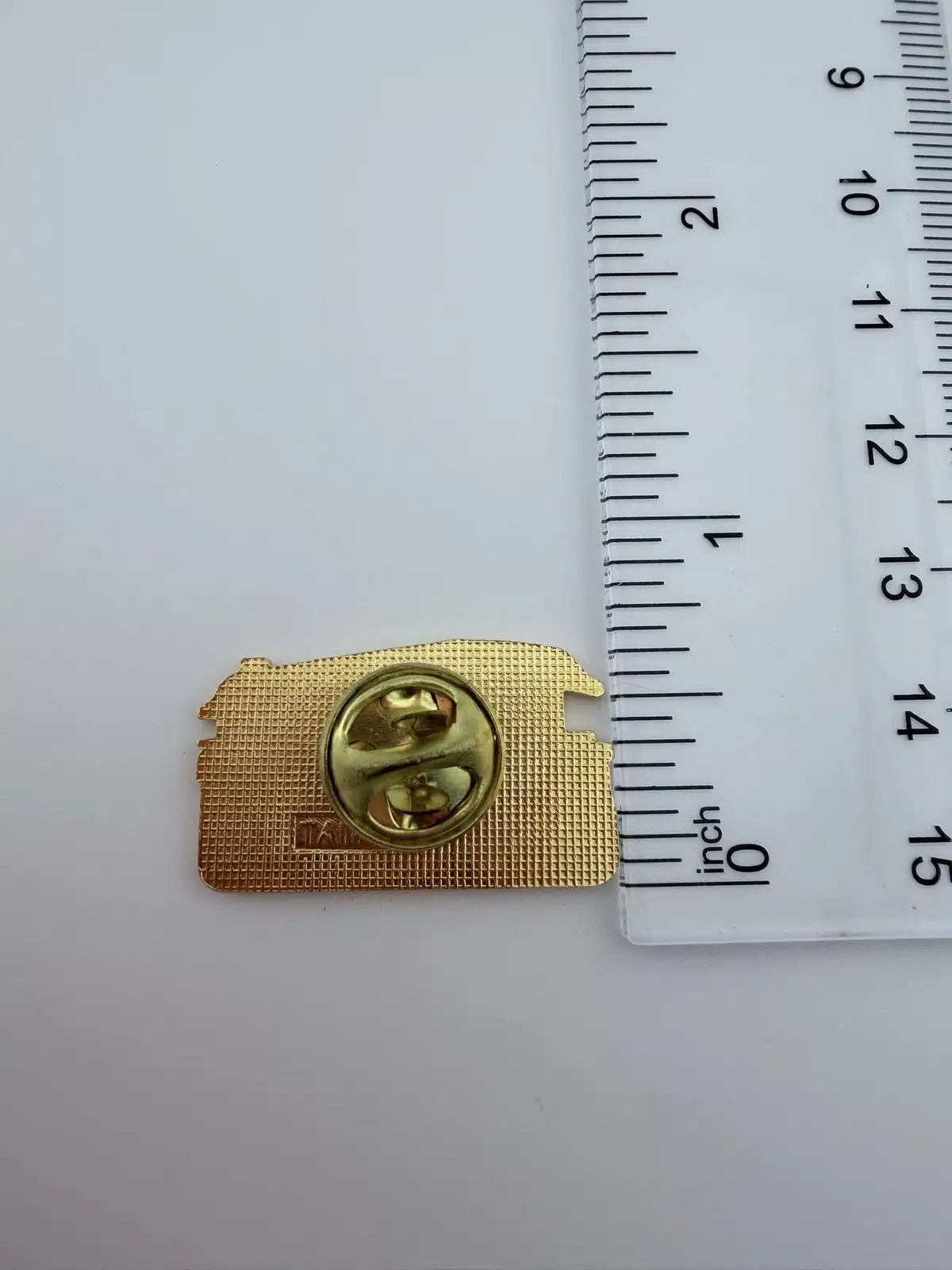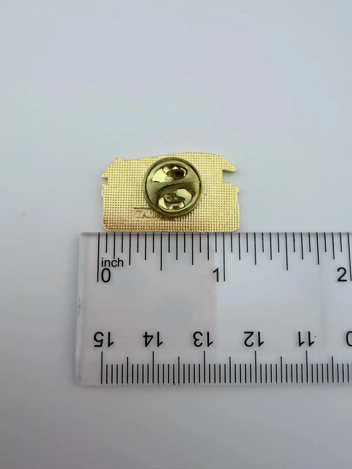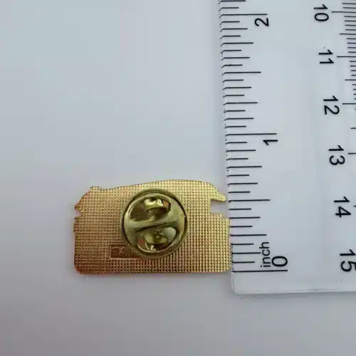 Pin measures just over 1 inch in width by just over 1/2 inch in height.