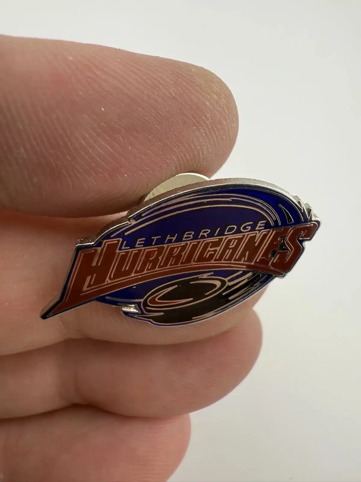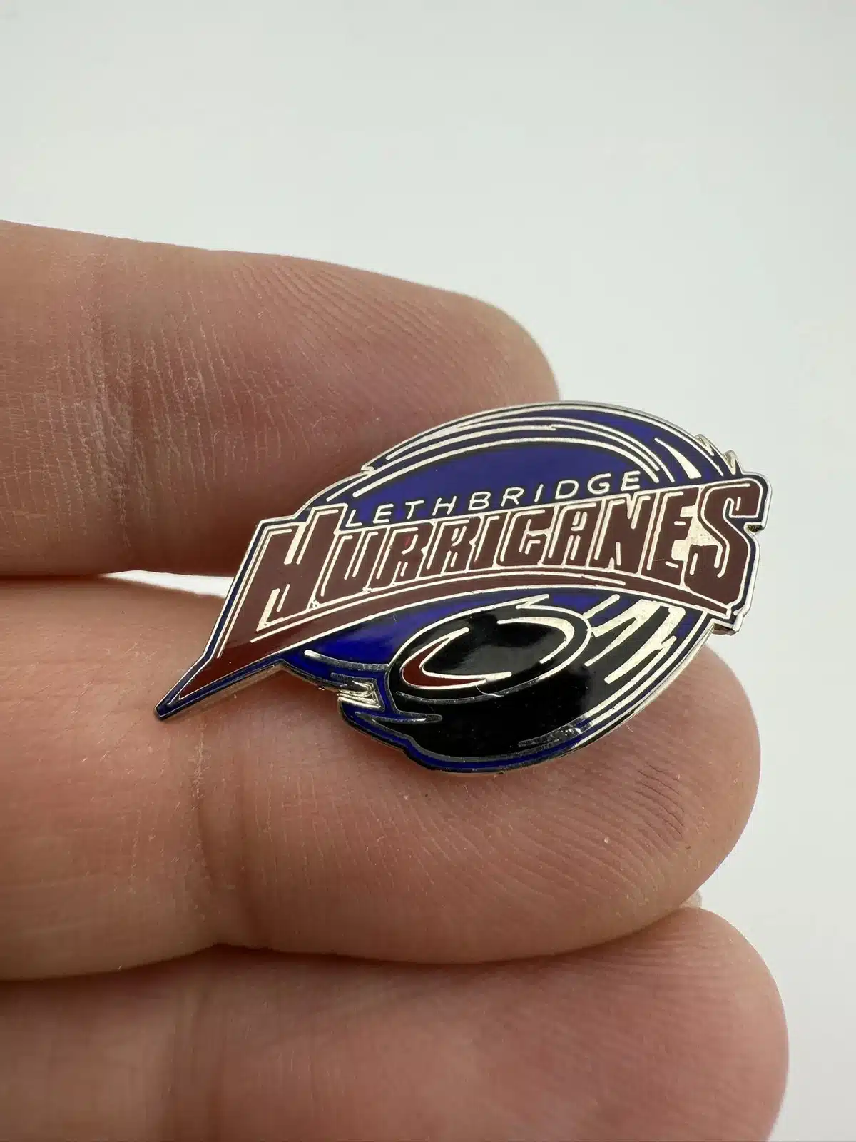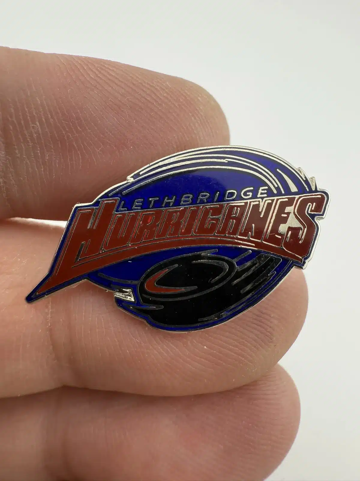 This pin features the official logo of the Lethbridge Hurricanes, a junior ice hockey team based in Lethbridge, Alberta.