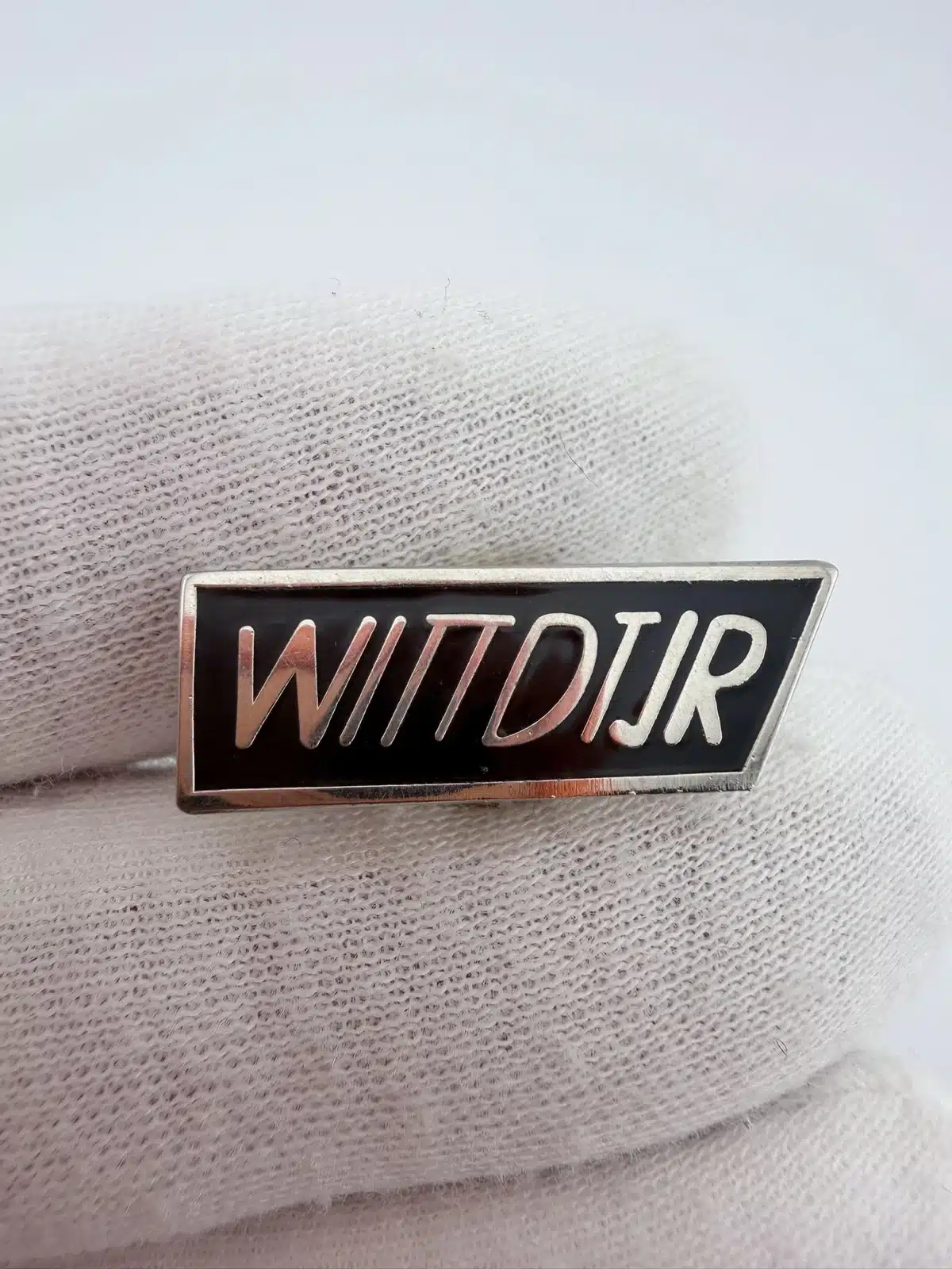 This silver tone tie tack pin features a striking black enamel background and prominently displays the acronym ‘WITTDTJR,’ which stands for ‘What It Takes To Do The Job Right.’ This phrase has been associated with AutoZone, reflecting the company’s commitment to service excellence and employee dedication.