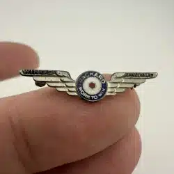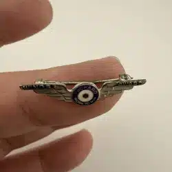 The Packard Motor Car Company Wings Award pin is a rare piece of WWII-era industrial memorabilia, honoring employees who contributed to manufacturing aircraft engines for the war effort. Made of metal with a classic winged design, it represents Packard’s vital role in wartime aviation engine production.