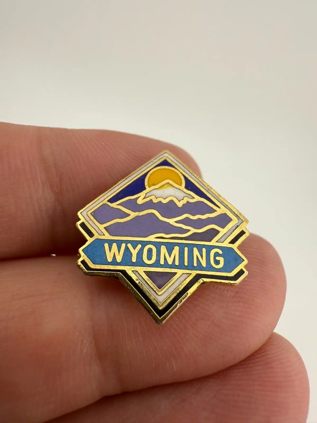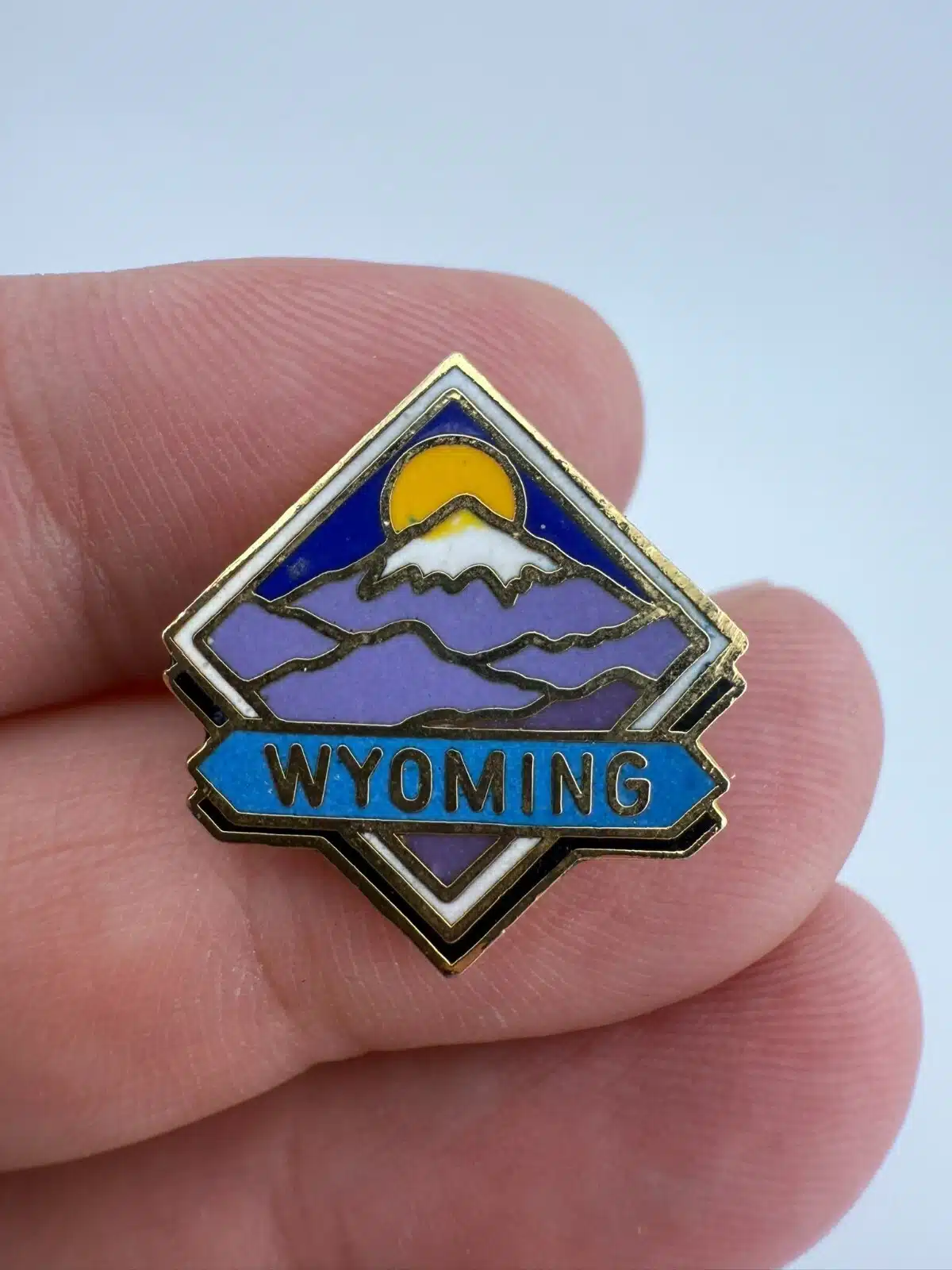 Wyoming State Lapel Pin with Mountains, Snow, and Sun – Vintage – Corrosion