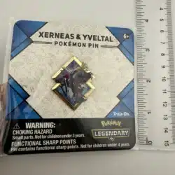 This pin features the iconic Legendary Pokémon Xerneas and Yveltal, showcasing their vibrant colors and distinct designs that represent life and destruction, respectively. Released by GameStop in 2018, it captures the essence of the Pokémon franchise’s rich lore and the duality of these powerful creatures.