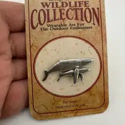 George G. Harris Pewter Humpback Whale With Calf 485 Pin On Original Backing